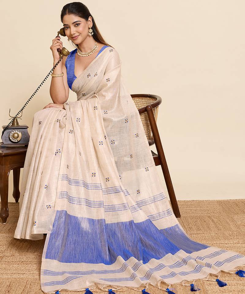 | Product Description | Enhance Your Ethnic Collection With This Elegant Linen Blend Saree Featuring Classy Color Stripes And Delicate Butti All Over. Crafted From Lightweight Breathable Fabric, This Saree Offers A Soft Texture And Graceful Drape, Making It Ideal For Daily Wear, Office Wear, Festive Gatherings, Pooja Functions, Casual Celebrations, And Traditional Occasions. The Sophisticated Contrast Pallu With Tassel Detailing Adds A Stylish Modern Touch While Maintaining Timeless Ethnic Charm. Pair It With Statement Jewelry And Heels For A Refined And Graceful Look. Perfect For Women Who Love Simple, Classy, And Comfortable Sarees With Traditional Elegance. |