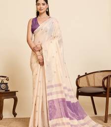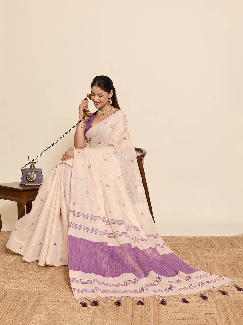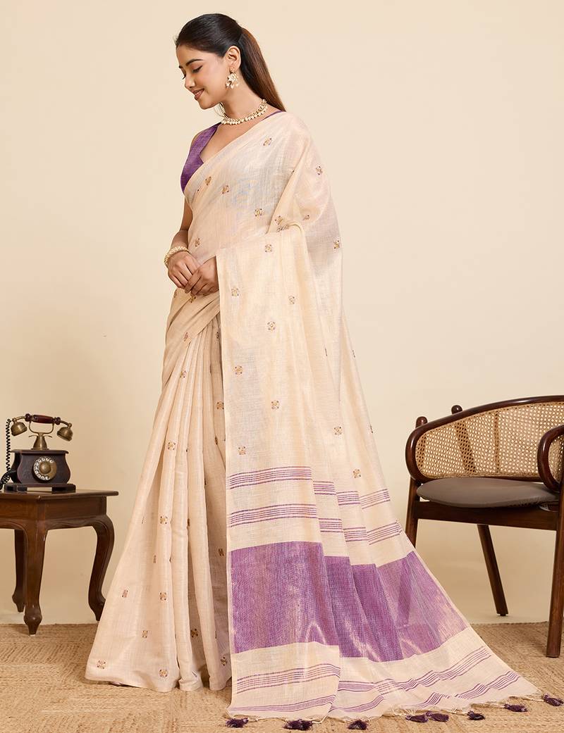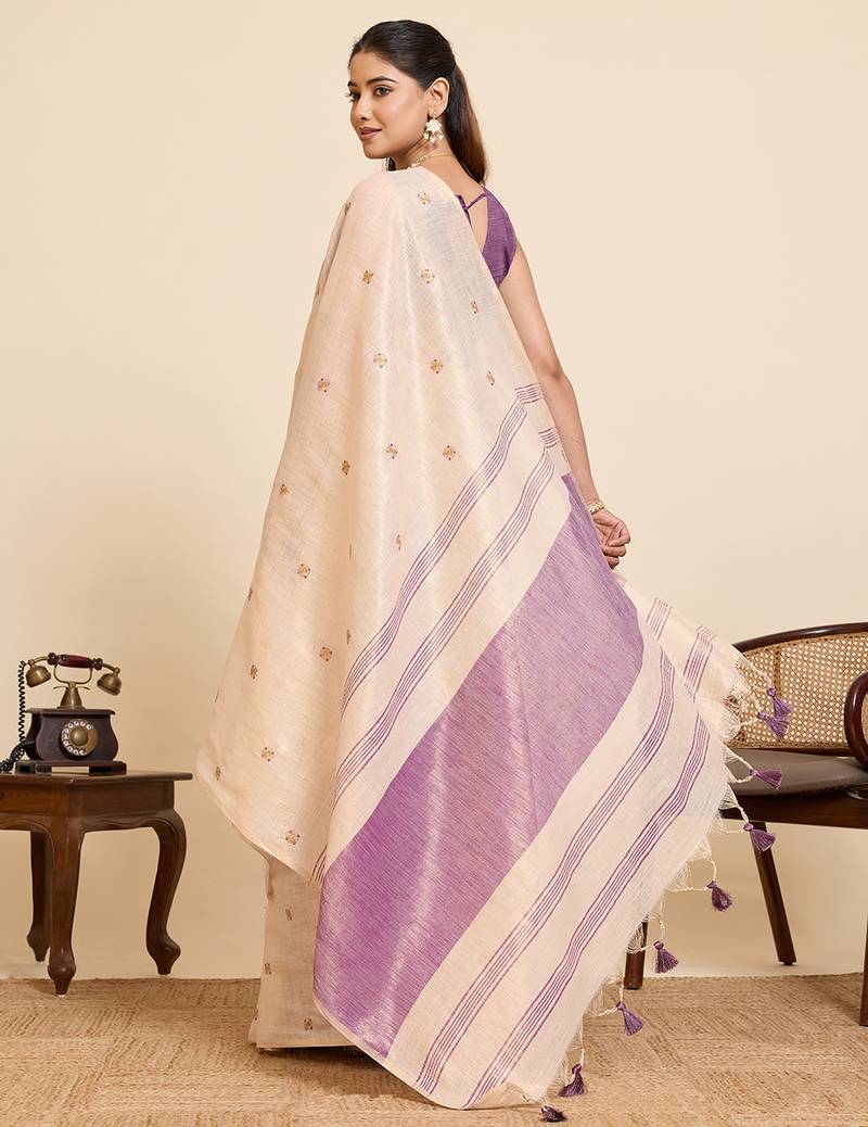 Women's elegant purple linen blend saree with unstiched blouse piece