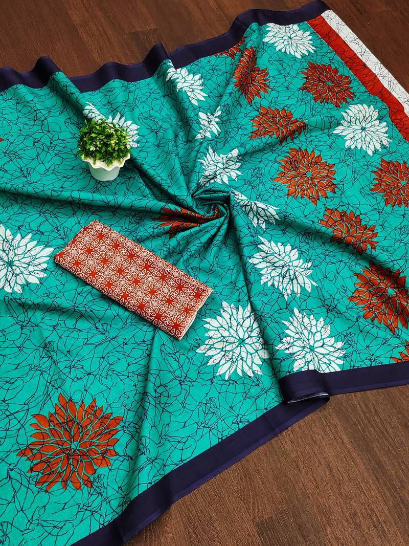 | Product Name | Aqua Blue Floral, Block Print Mulmul Cotton Saree With Blouse. | |