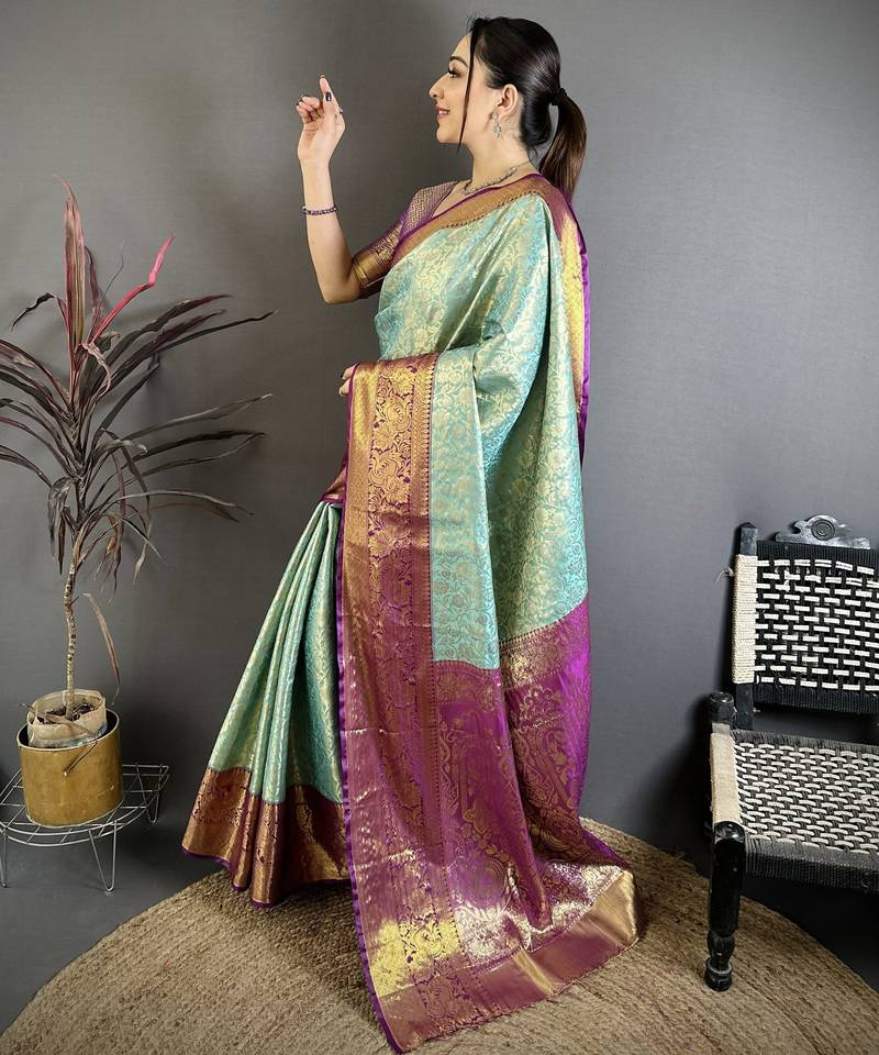 | Product Name | Aqua Blue, Purple Floral, Zari Woven Kanjivaram Silk Saree With Blouse | |