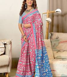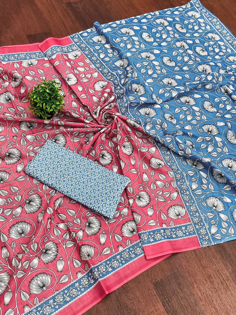 | Product Name | Baby Pink Floral Print Soft Pure Cotton Saree With Blouse. | |