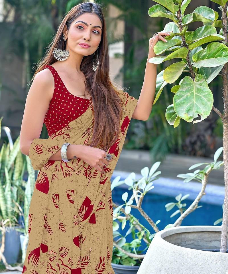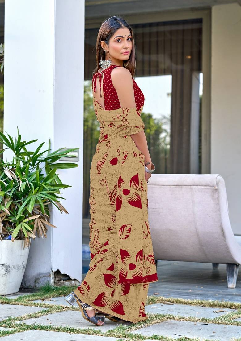 | Product Name | Beige Floral Print Mulmul Cotton Saree With Blouse. | |