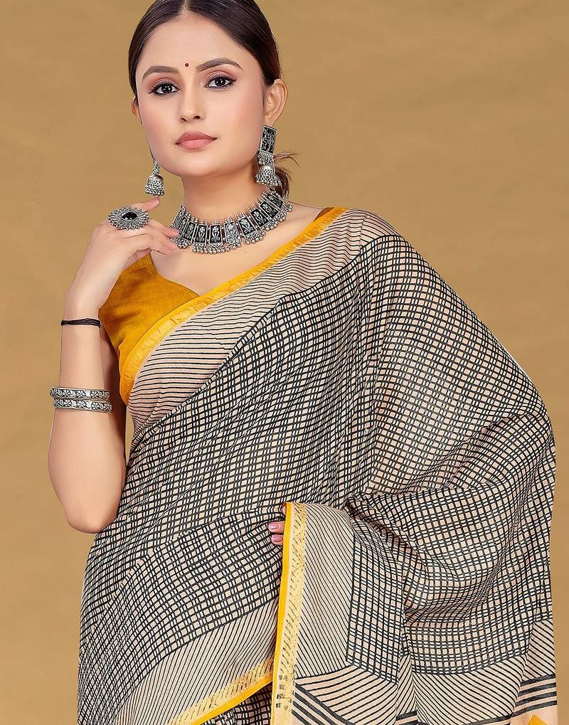 | Product Name | Beige Floral Print Muslin Cotton Saree With Blouse. | |