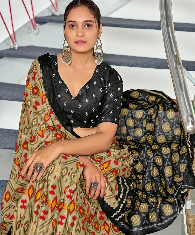 | Product Name | Beige Ikkat Print Soft Pure Cotton Saree With Blouse. | |
