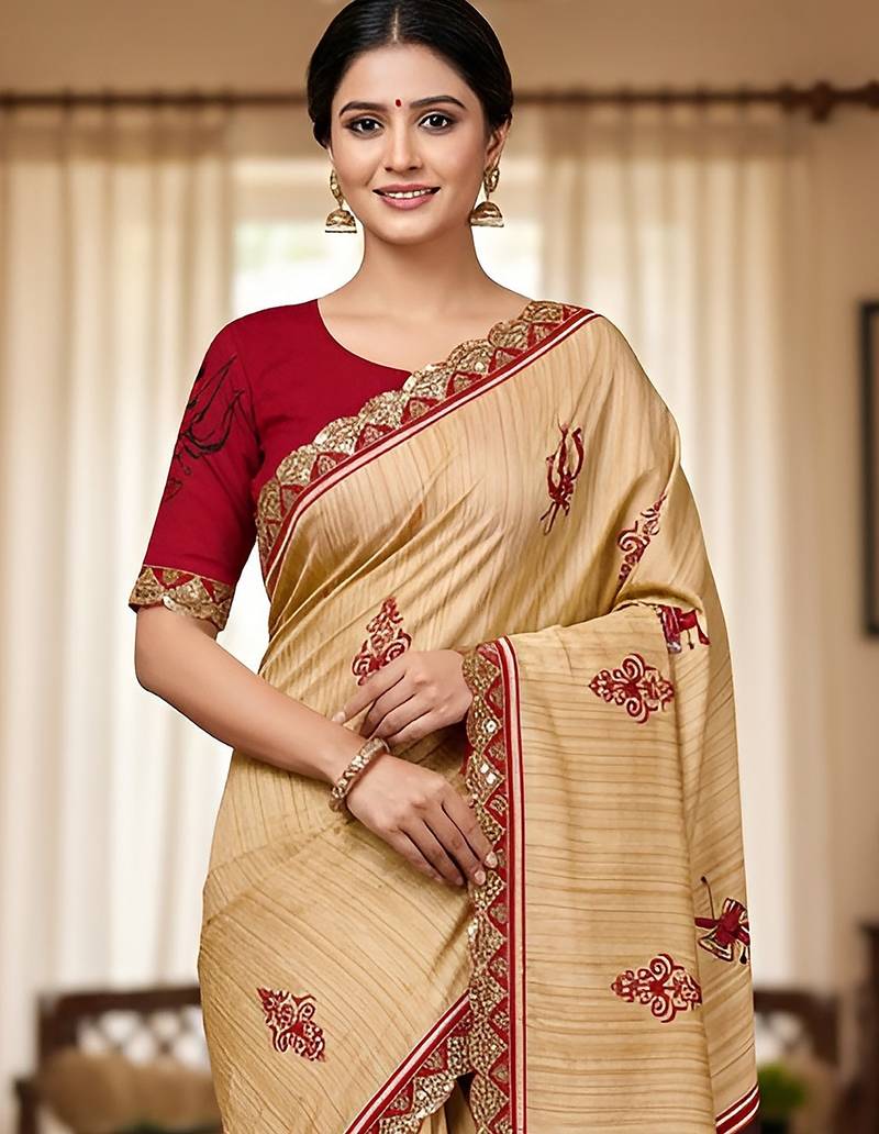 | • | Saree | : | Color- Beige / Fabric- Pure Cotton |