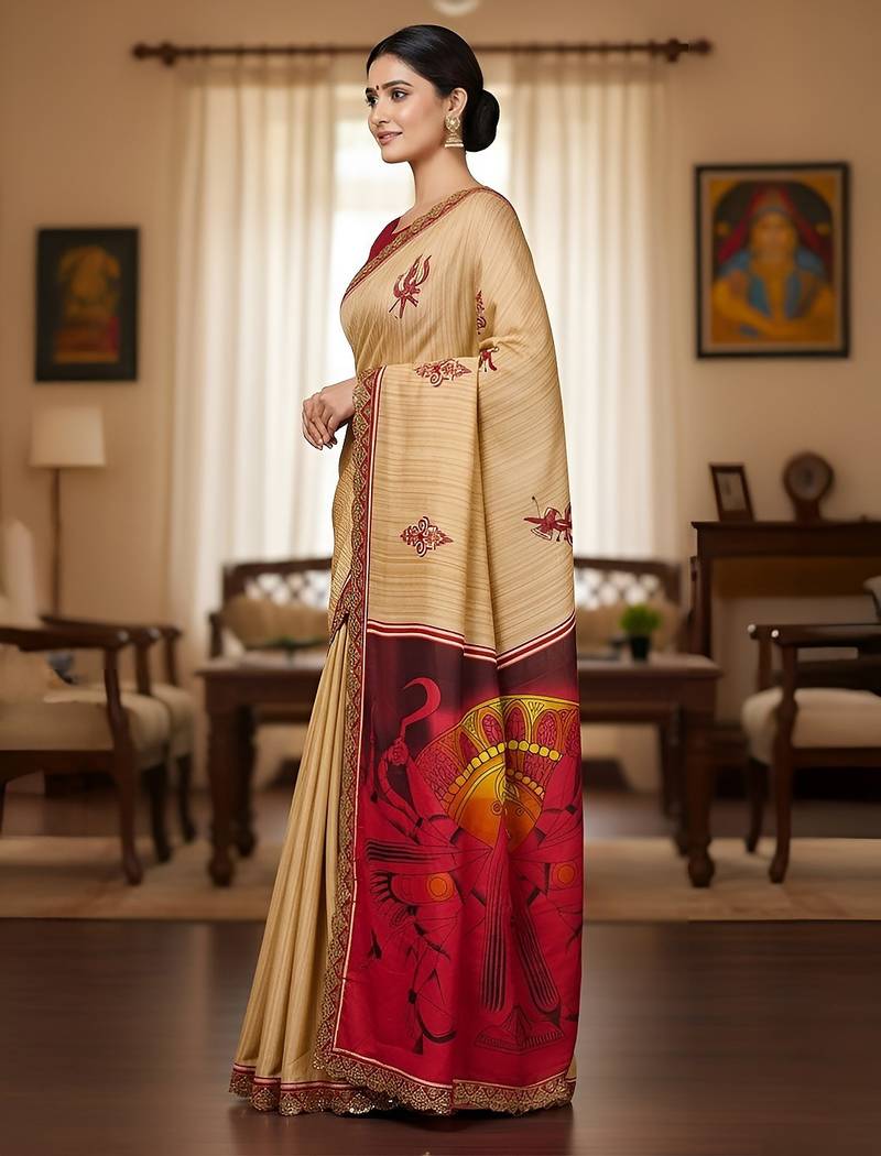 | Product Name | Beige Kalamkari Print Mulmul Cotton Saree With Blouse. | |
