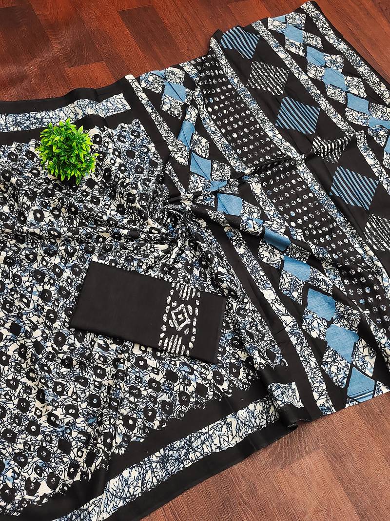| Product Name | Black Batik Print Mulmul Cotton Saree With Blouse. | |