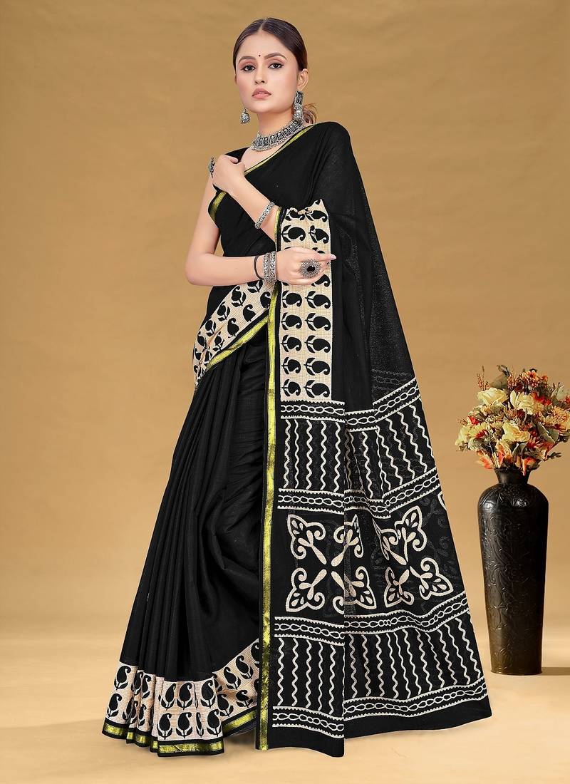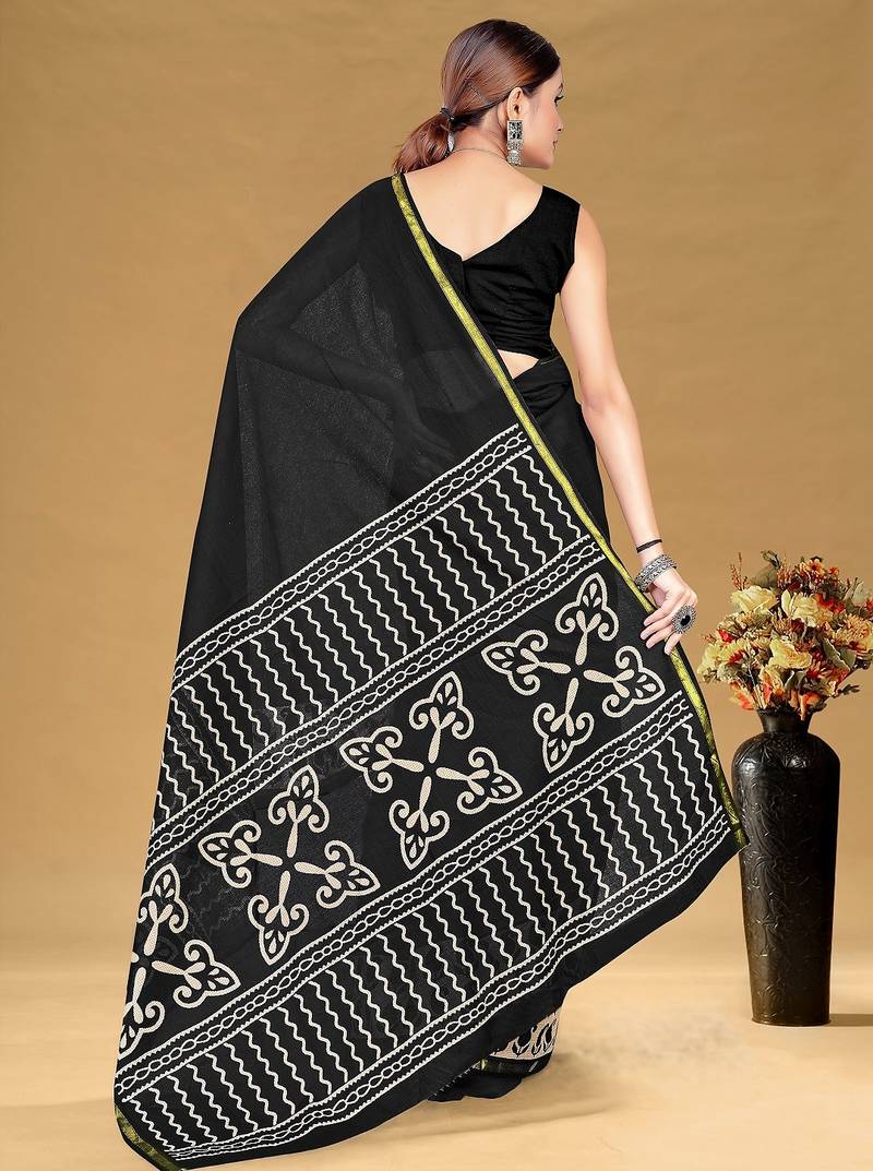 | Product Name | Black Floral Print Muslin Cotton Saree With Blouse. | |