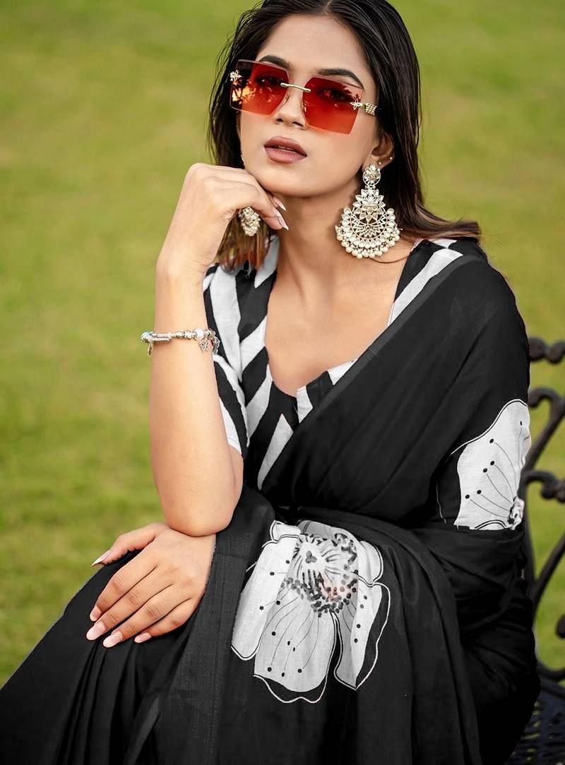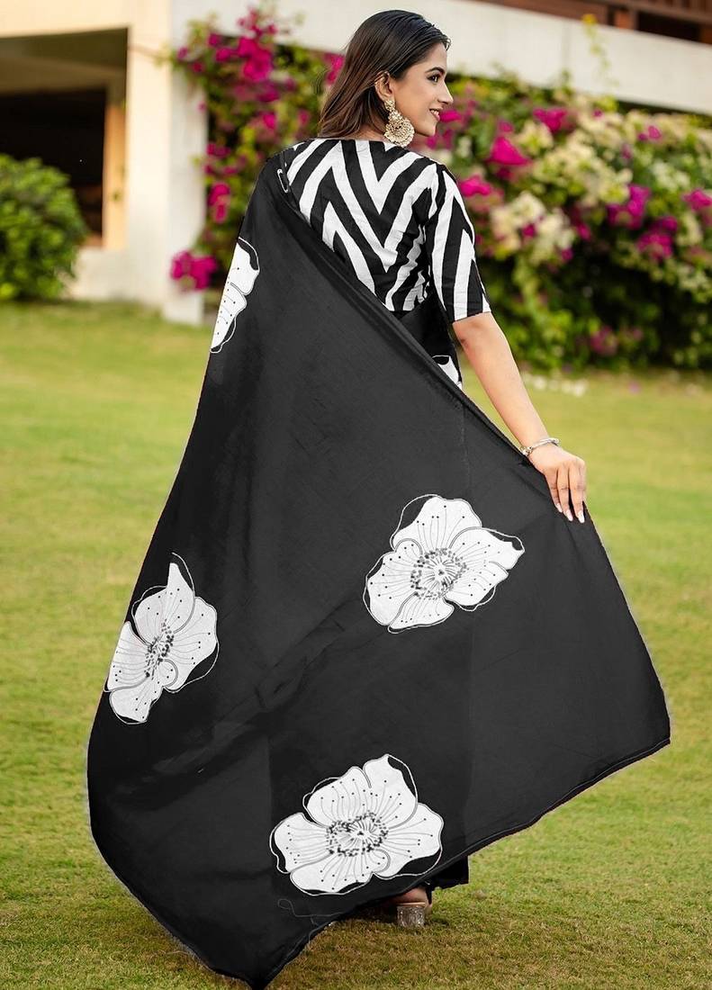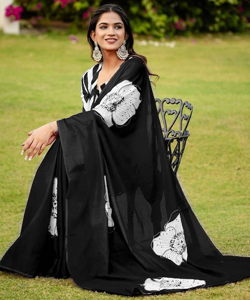 | Product Name | Black Floral Print Soft Pure Cotton Saree With Blouse. | |