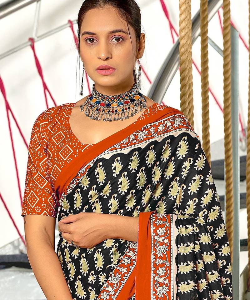 | Product Name | Black Paisley Print Mulmul Cotton Saree With Blouse. | |