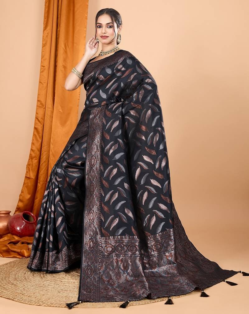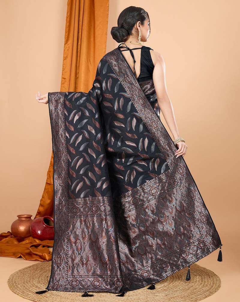 | Product Name | Black Woven Self Design Embellished Pure Silk Banarasi Saree With Blouse | |