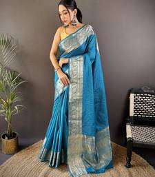| • | Saree | : | Color- Blue / Fabric- Silk Blend |