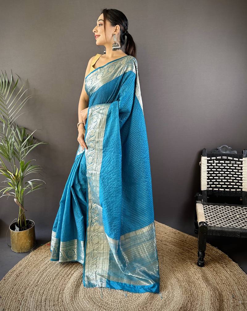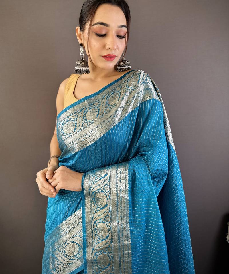 | Product Name | Blue Checkered, Floral, Zari Woven Pure Naylon Viscose Saree With Blouse | |