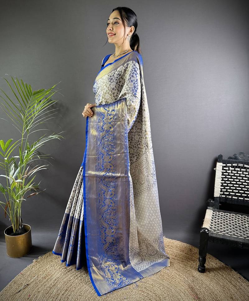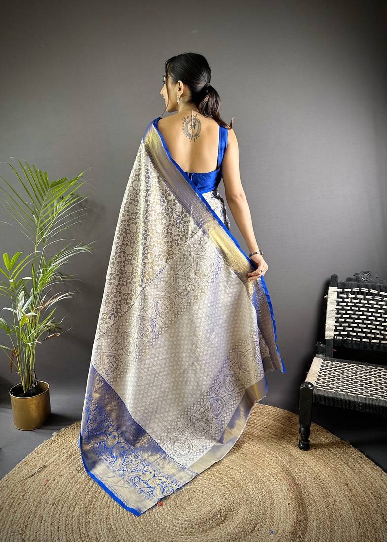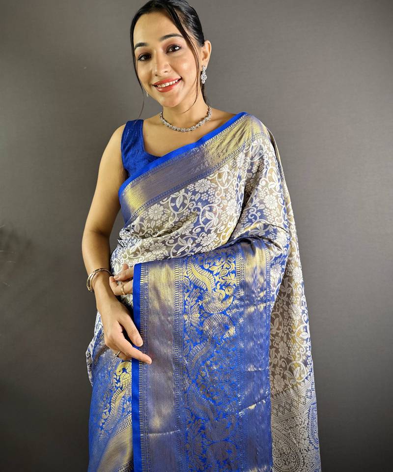 | Product Name | Blue Floral, Peacock Zari Woven Kanjivaram Tissue Silk Saree With Blouse | |