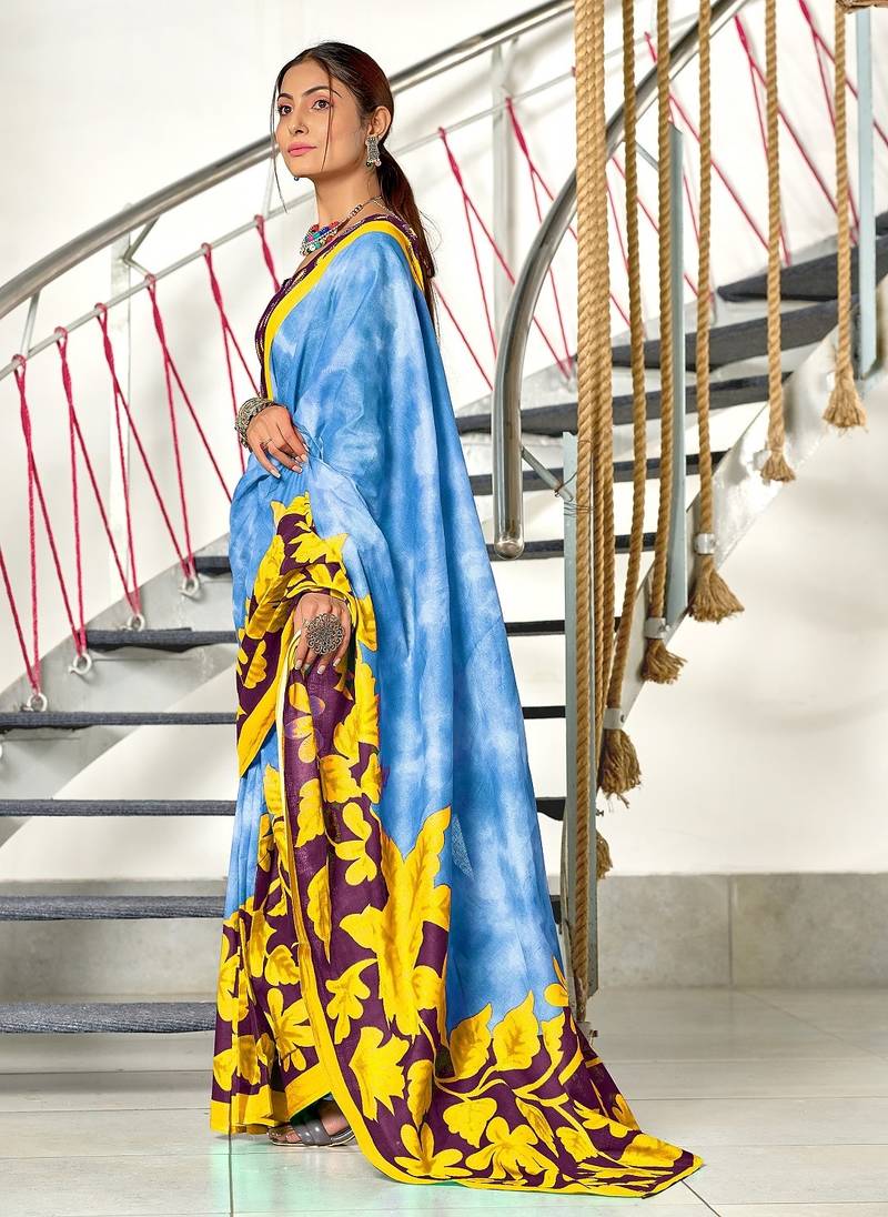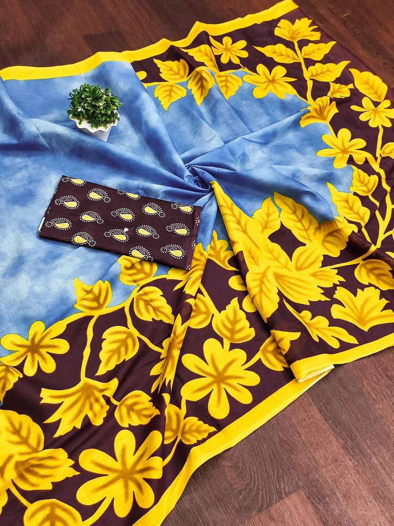 | Product Name | Blue Floral Print Mulmul Cotton Saree With Blouse. | |