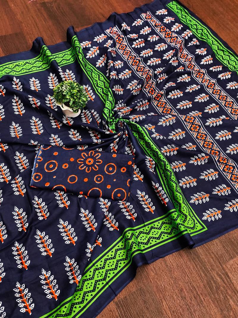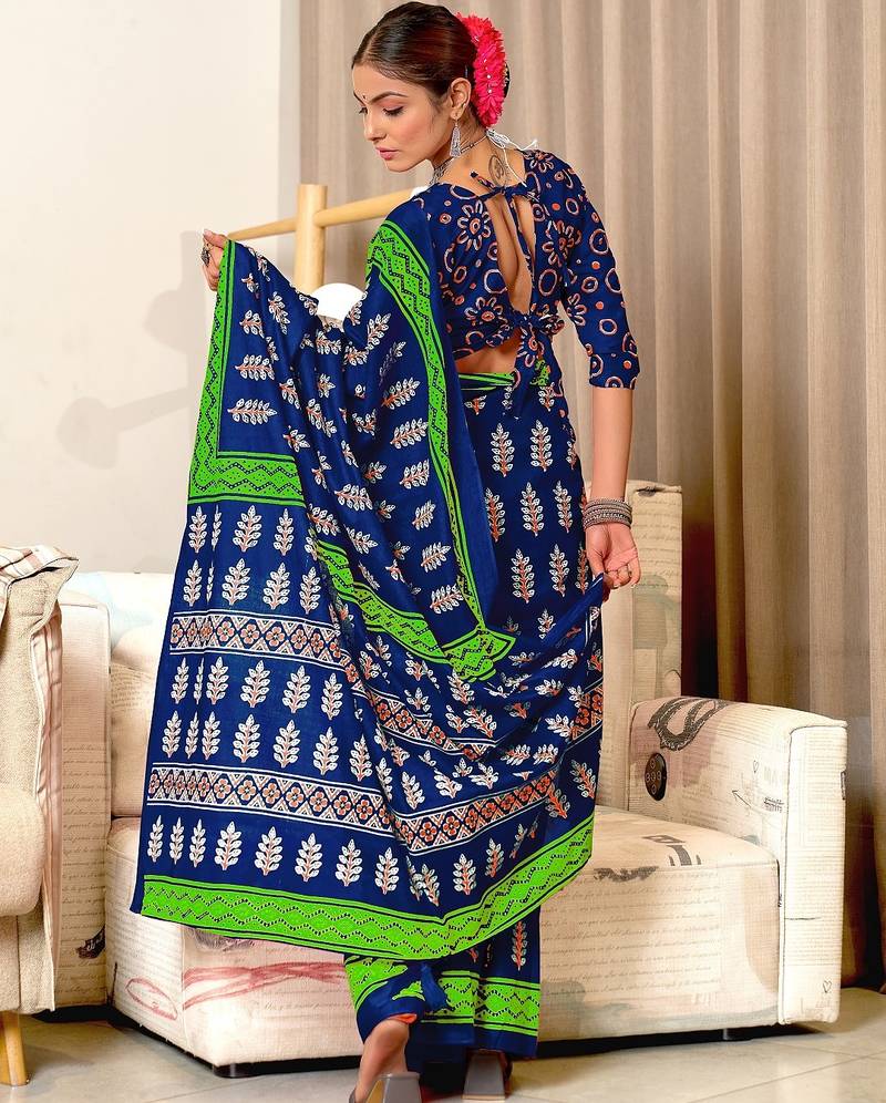 | Product Name | Blue Floral Print Mulmul Cotton Saree With Blouse. | |