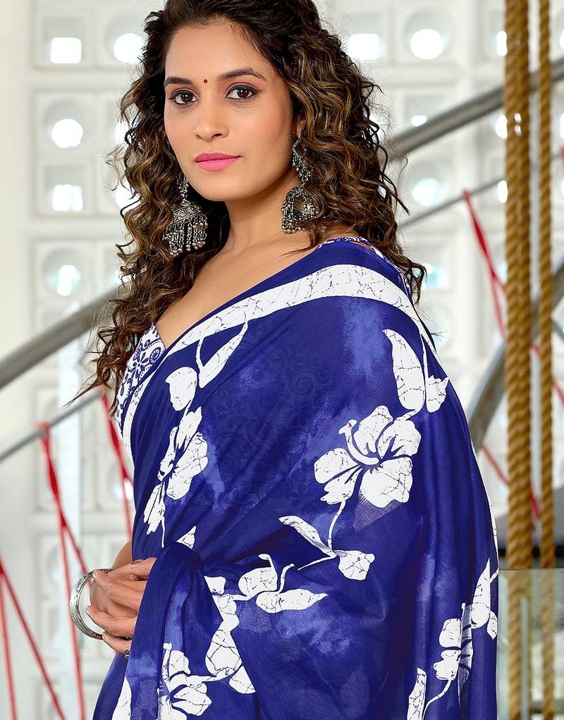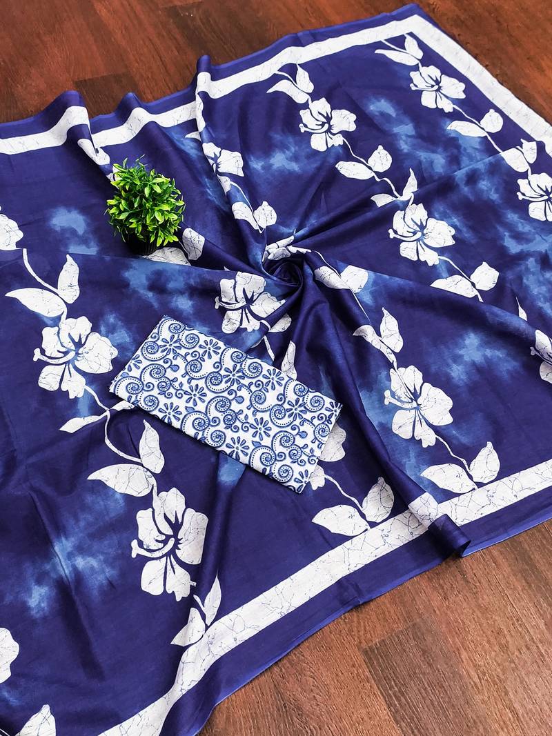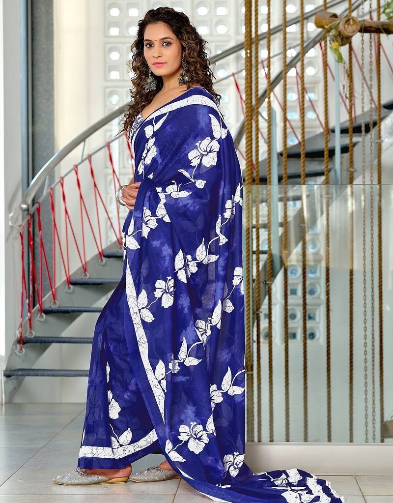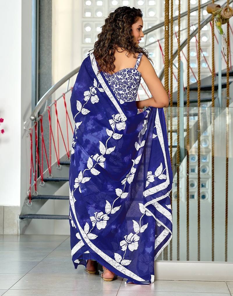 | Product Name | Blue Floral Print Soft Pure Cotton Saree With Blouse. | |