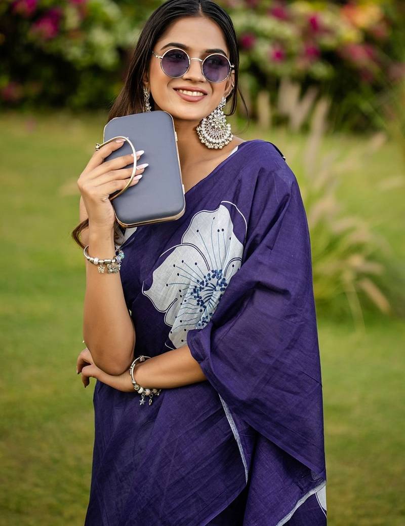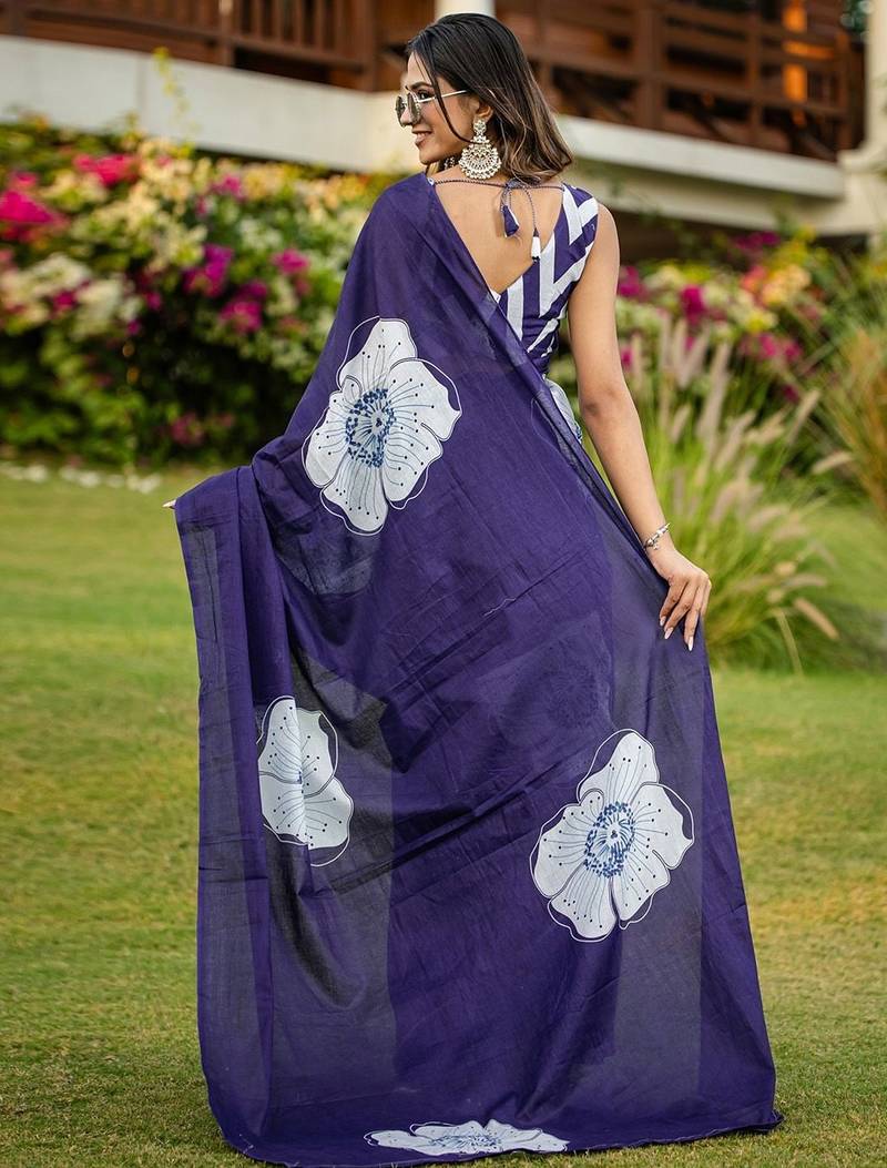 | Product Name | Blue Floral Print Soft Pure Cotton Saree With Blouse. | |