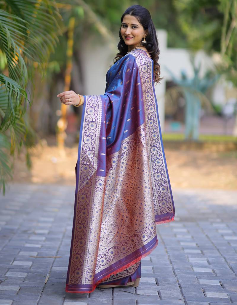 | Product Name | Blue Floral, Zari Work Banarasi Silk Saree With Blouse | |