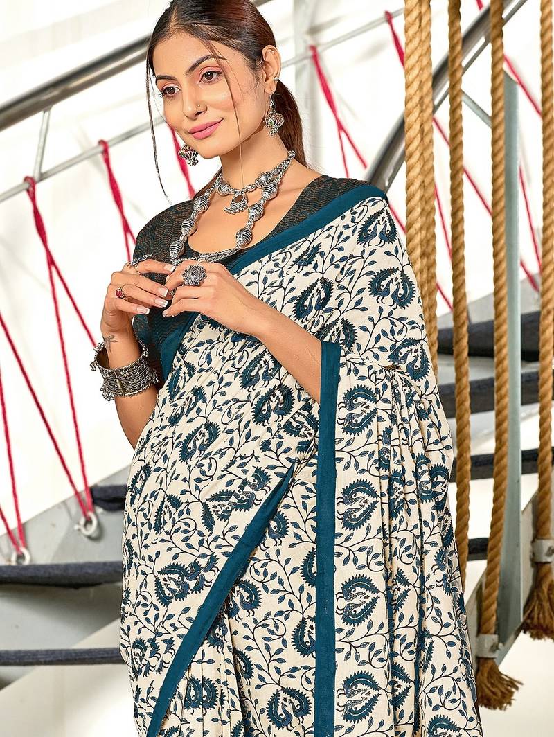 | Product Name | Blue Floral, Zigzag Print Mulmul Cotton Saree With Blouse. | |