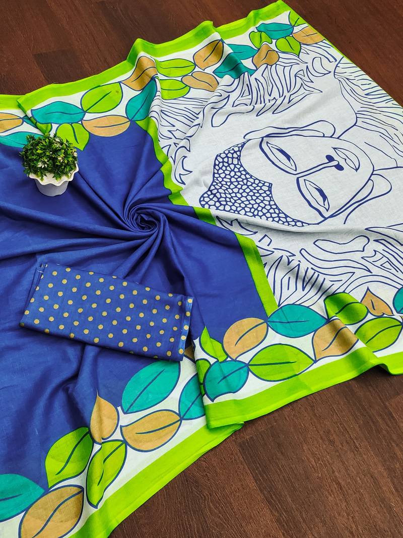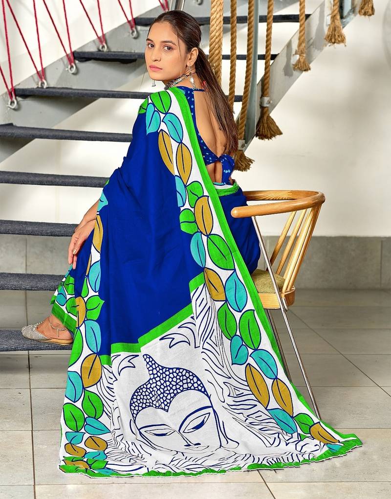 | Product Name | Blue Madhubani Print Mulmul Cotton Saree With Blouse. | |