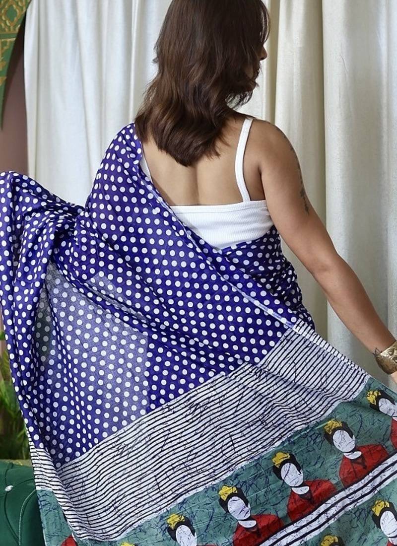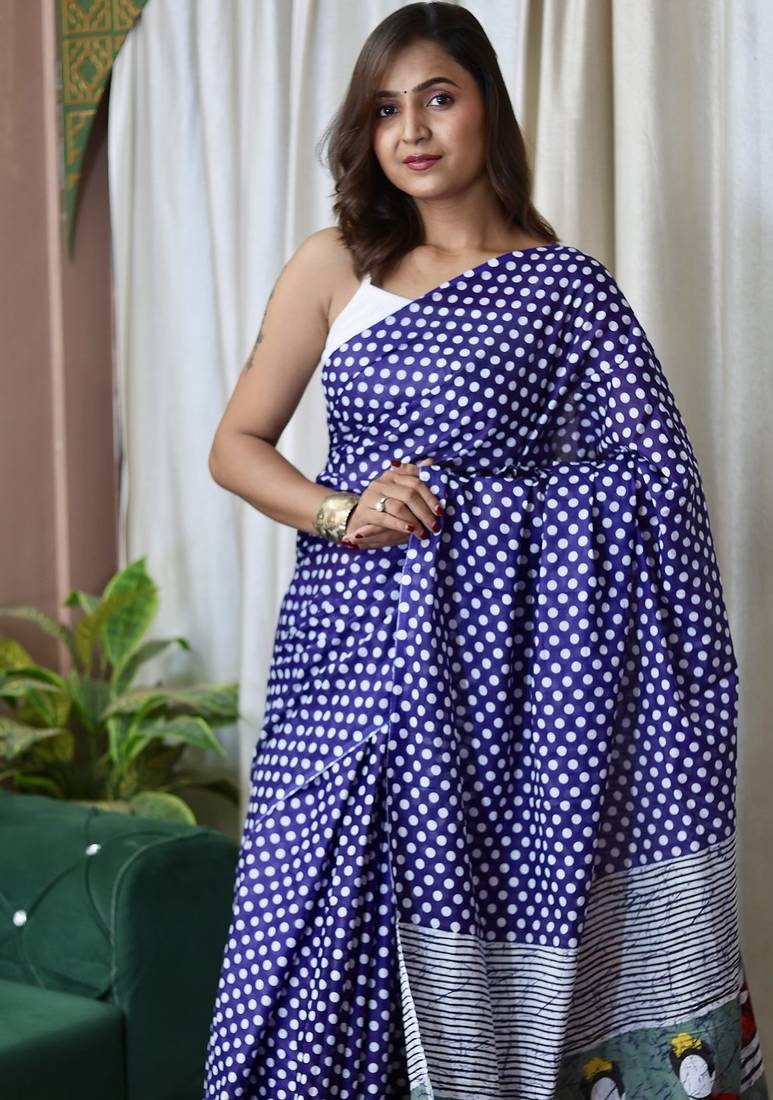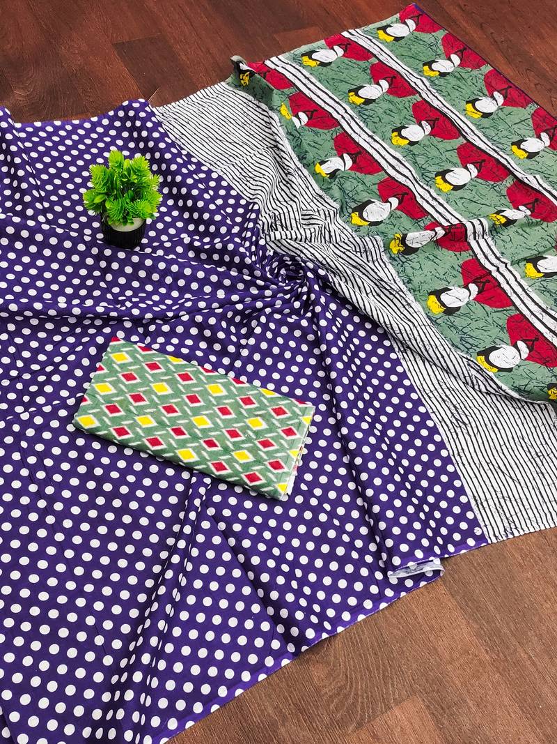 | Product Name | Blue Polka Dot Print Soft Pure Cotton Saree With Blouse. | |
