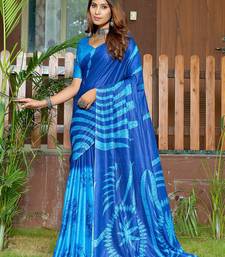 Blue printed mulmul cotton saree with blouse.