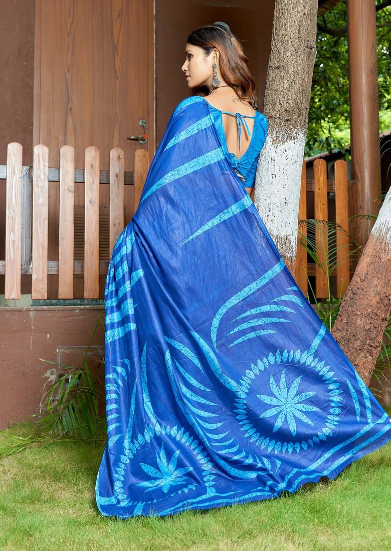 | Product Name | Blue Printed Mulmul Cotton Saree With Blouse. | |