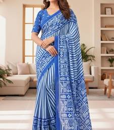 Blue striped print soft pure cotton saree with blouse.