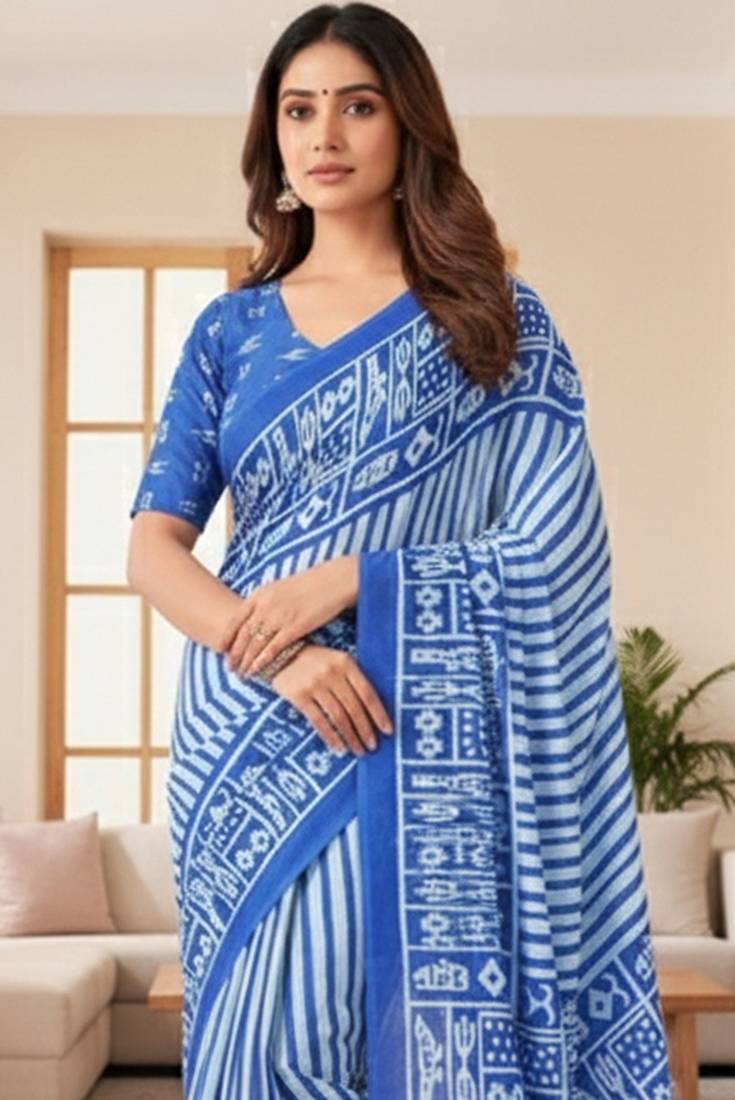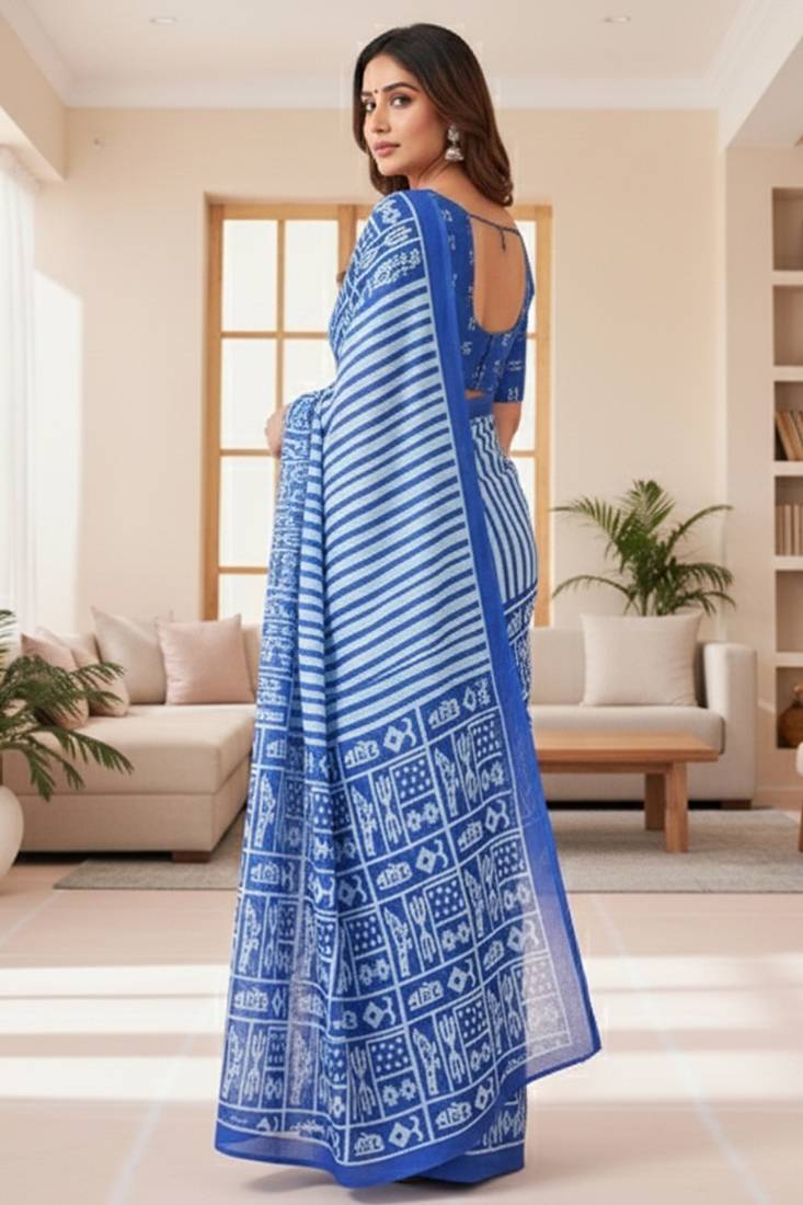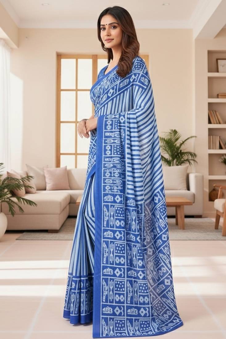 | Product Name | Blue Striped Print Soft Pure Cotton Saree With Blouse. | |