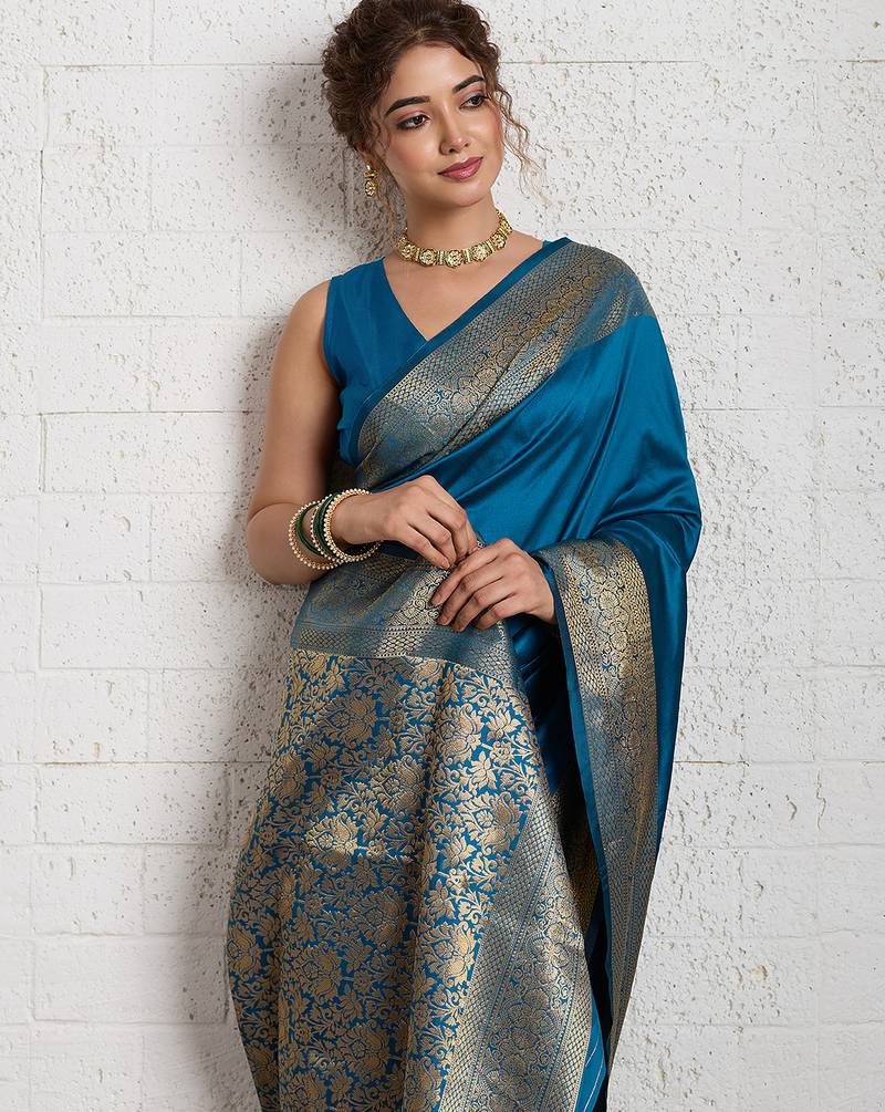 | Product Name | Blue Woven, Self Design, Embellished Pure Silk Banarasi Saree With Blouse | |