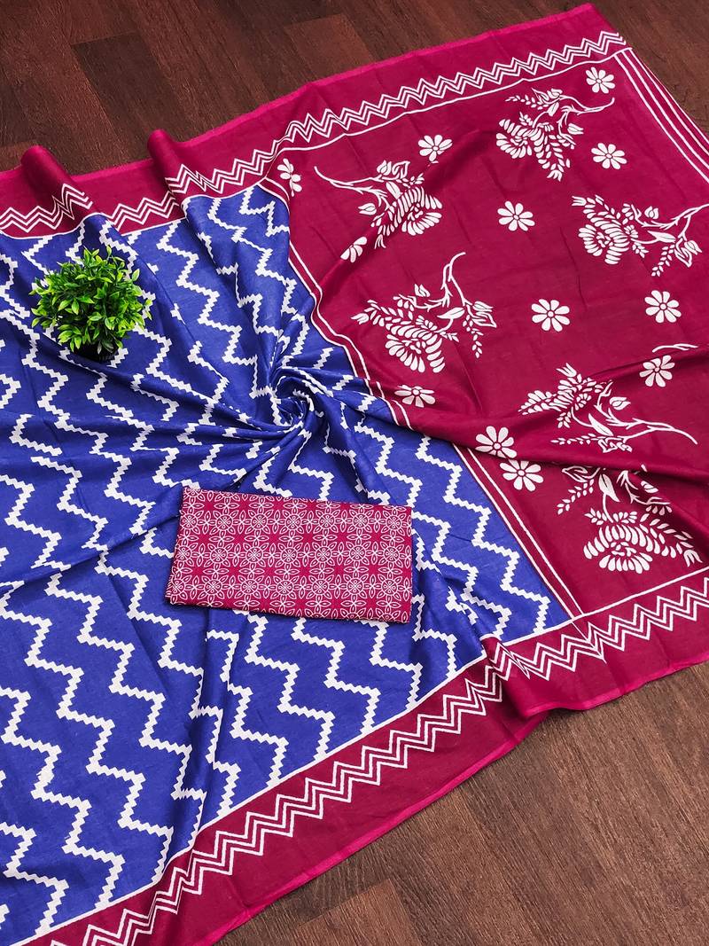 | Product Name | Blue Zigzag, Floral Print Mulmul Cotton Saree With Blouse. | |