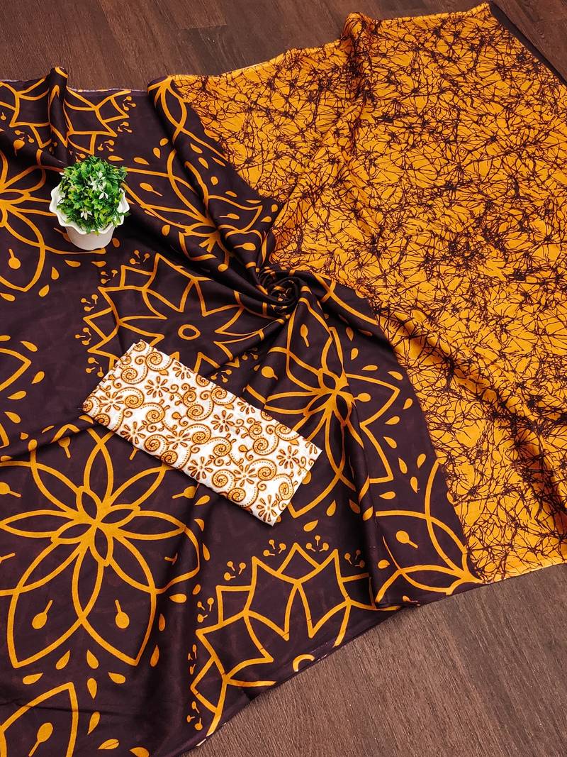 | Product Name | Brown Block Print Mulmul Cotton Saree With Blouse. | |