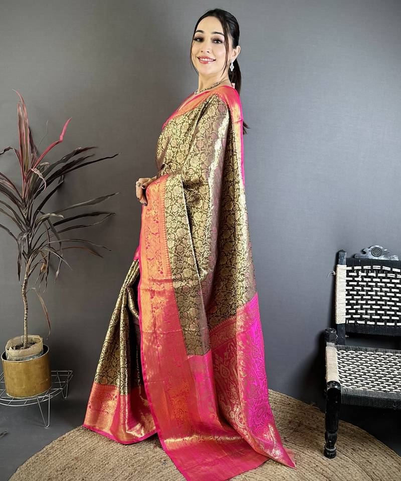 | Product Name | Brown, Pink Floral, Zari Woven Kanjivaram Silk Saree With Blouse | |
