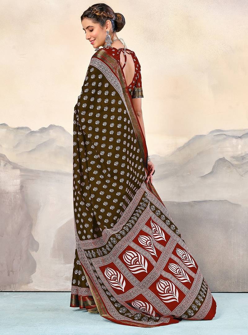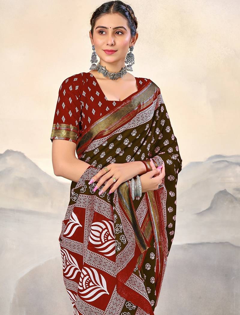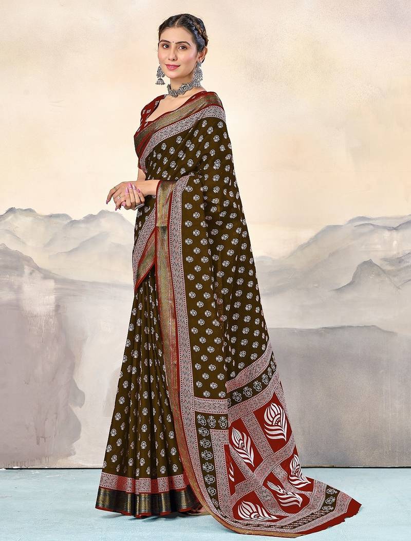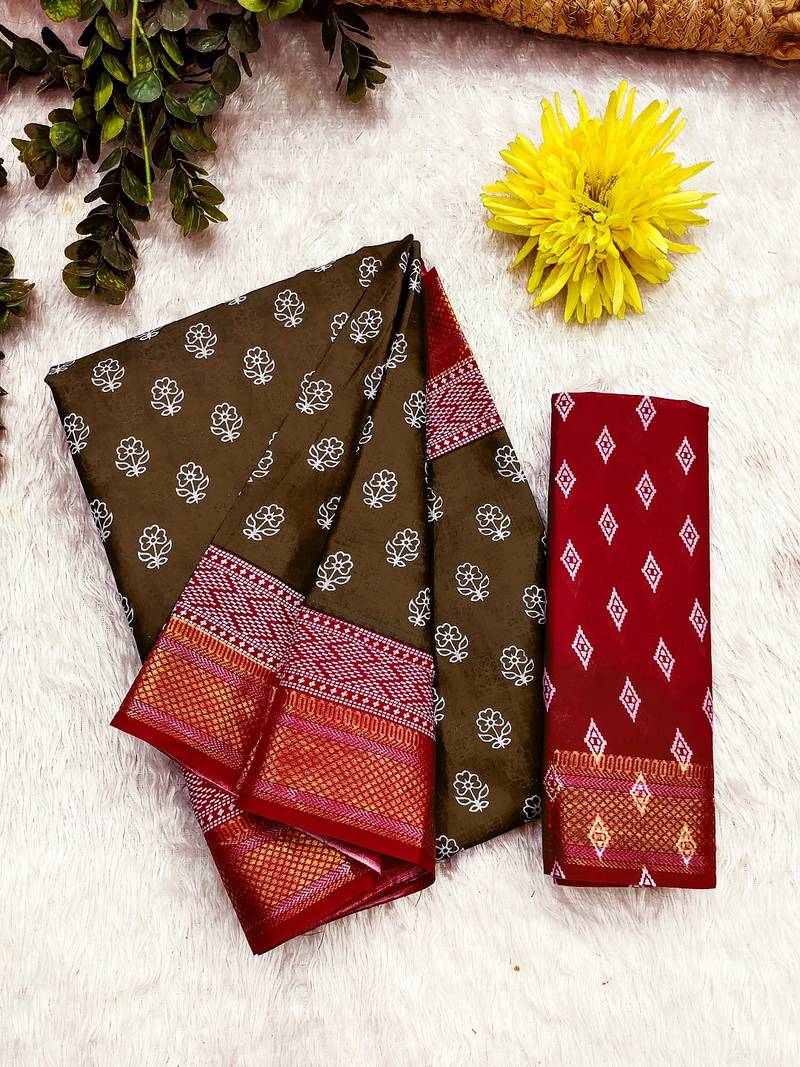 | Product Name | Brown, Red Floral Print Mulmul Cotton Saree With Blouse. | |