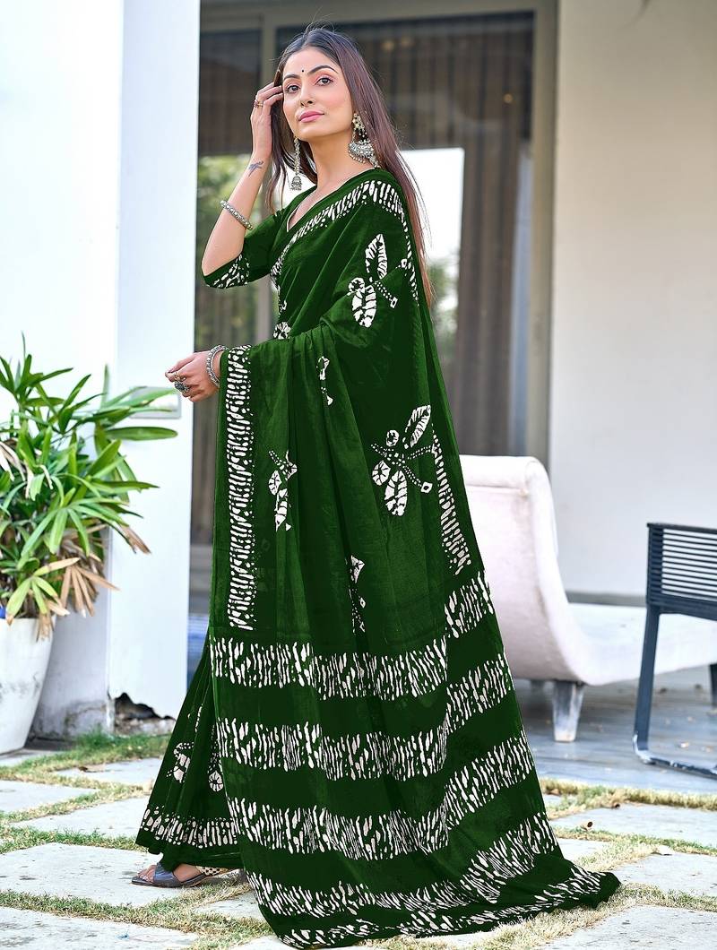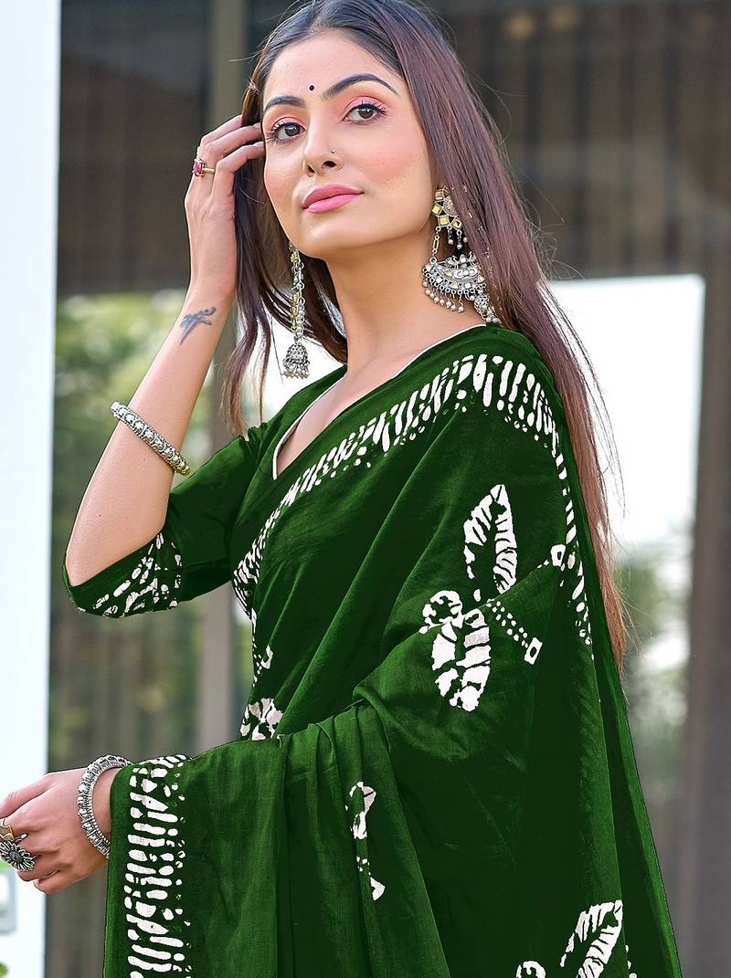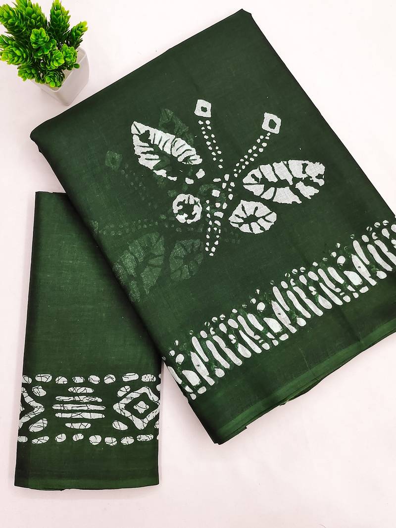 | Product Name | Dark Green Block Print Soft Pure Cotton Saree With Blouse. | |