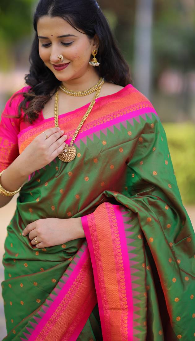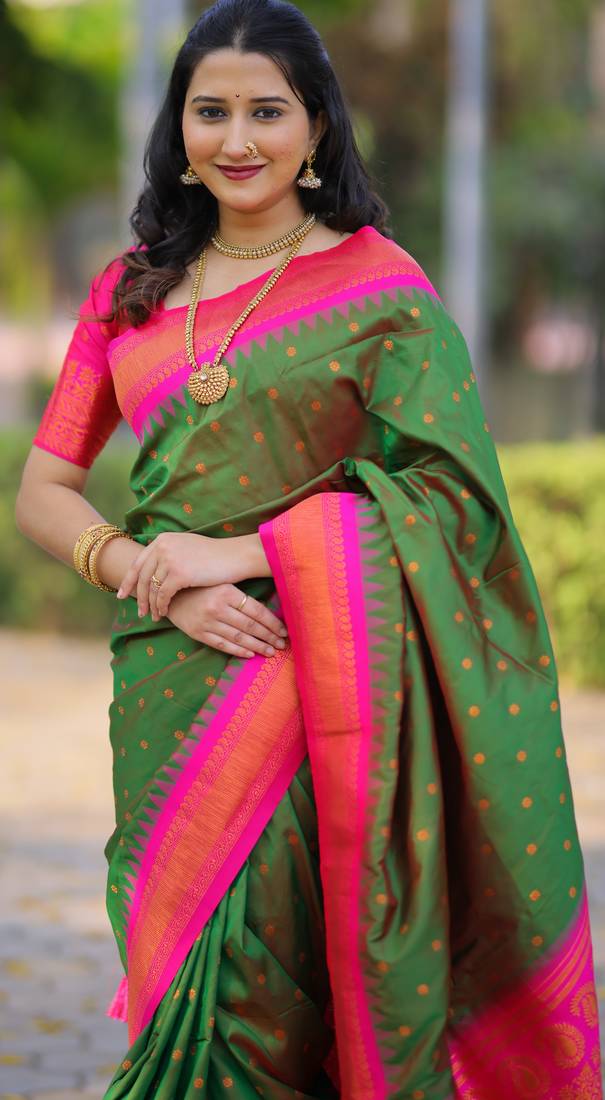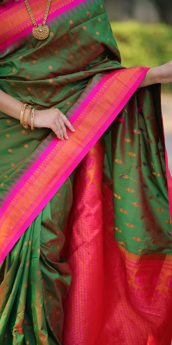 | • | Saree | : | Color- Dark Green / Fabric- Paithani Silk |