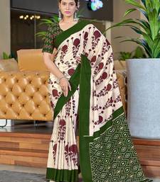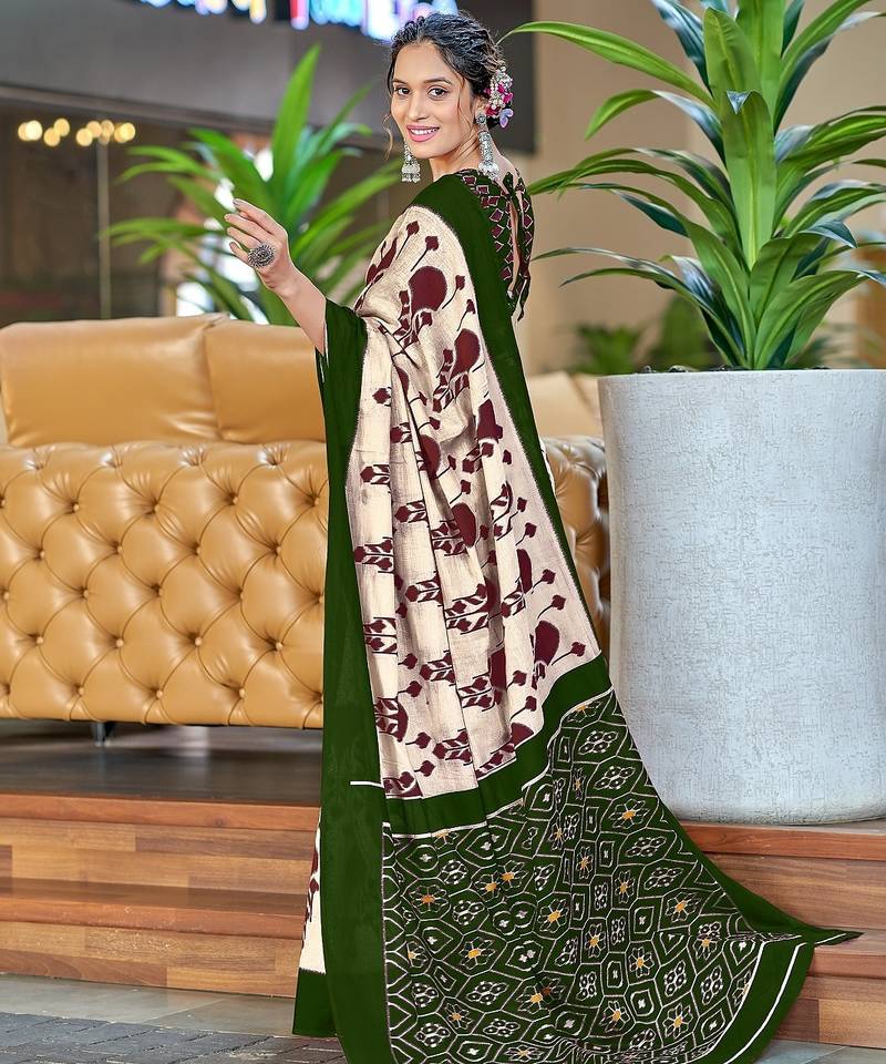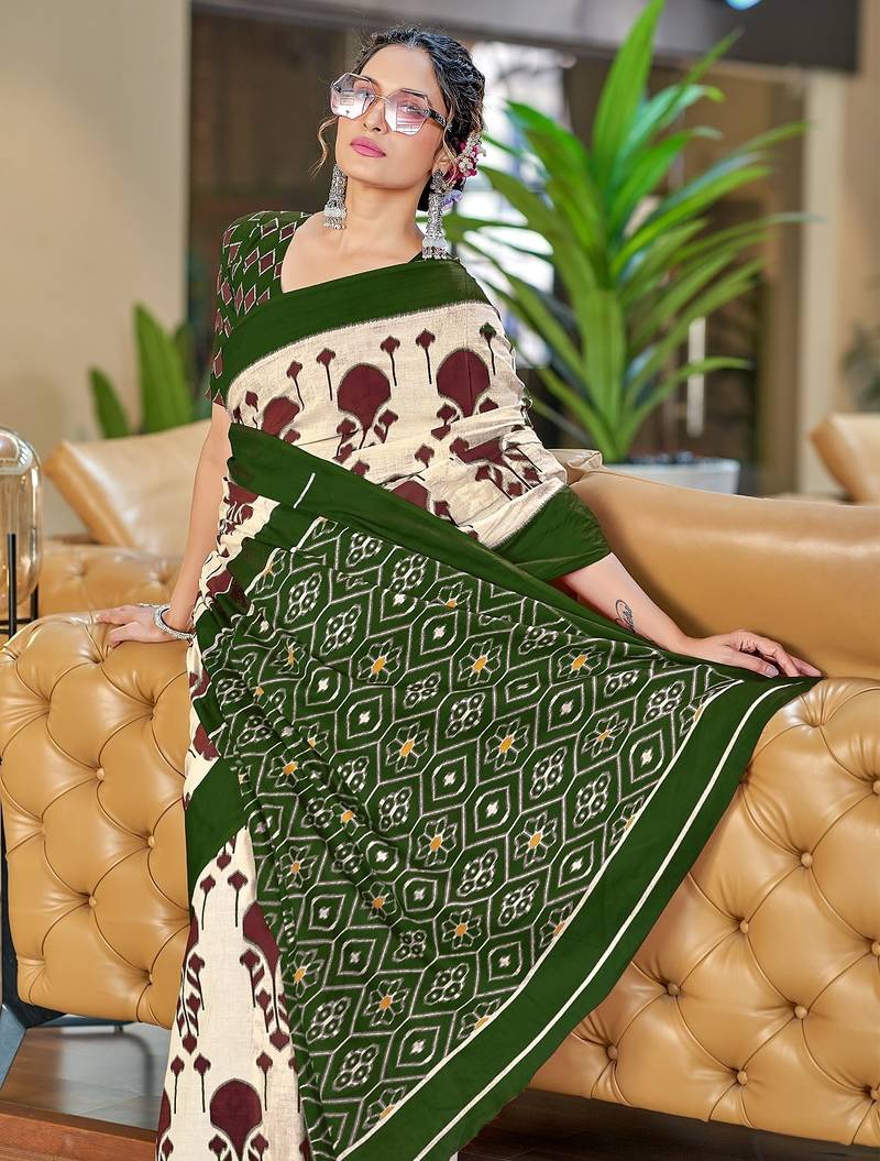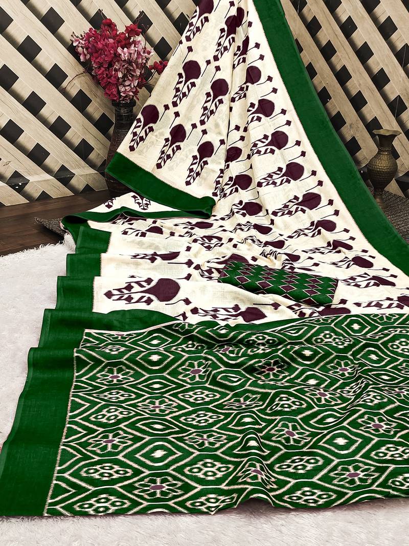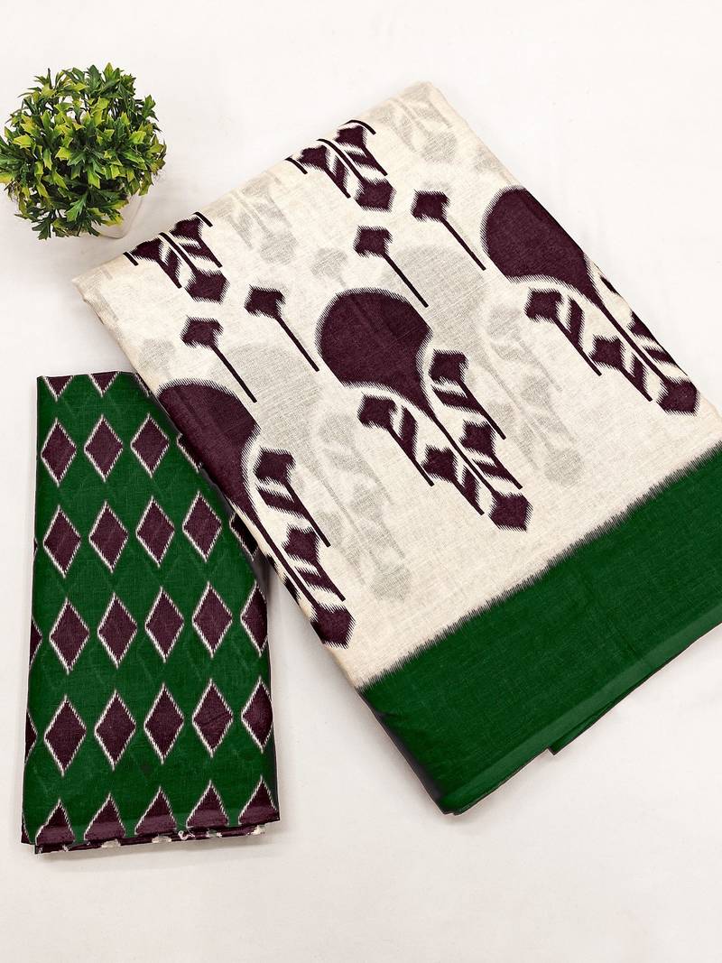 | Product Name | Dark Green Ikkat, Block Print Soft Pure Cotton Saree With Blouse. | |