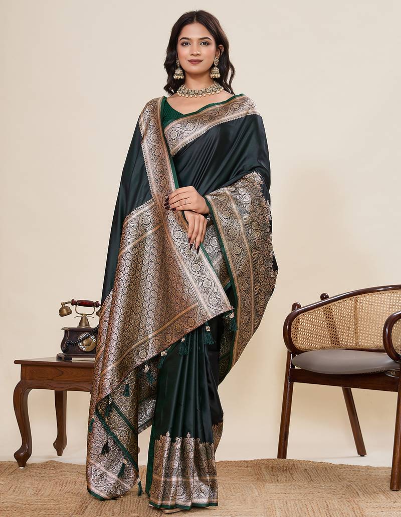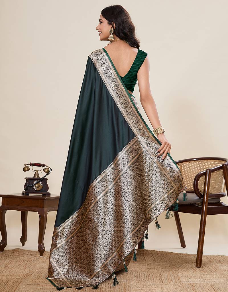 | Product Name | Dark Green Woven Pure Satin Silk Banarasi Saree With Blouse | |