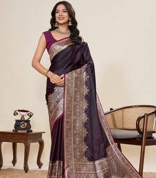 | Product Name | Dark Purple Woven Pure Satin Silk Banarasi Saree With Blouse | |