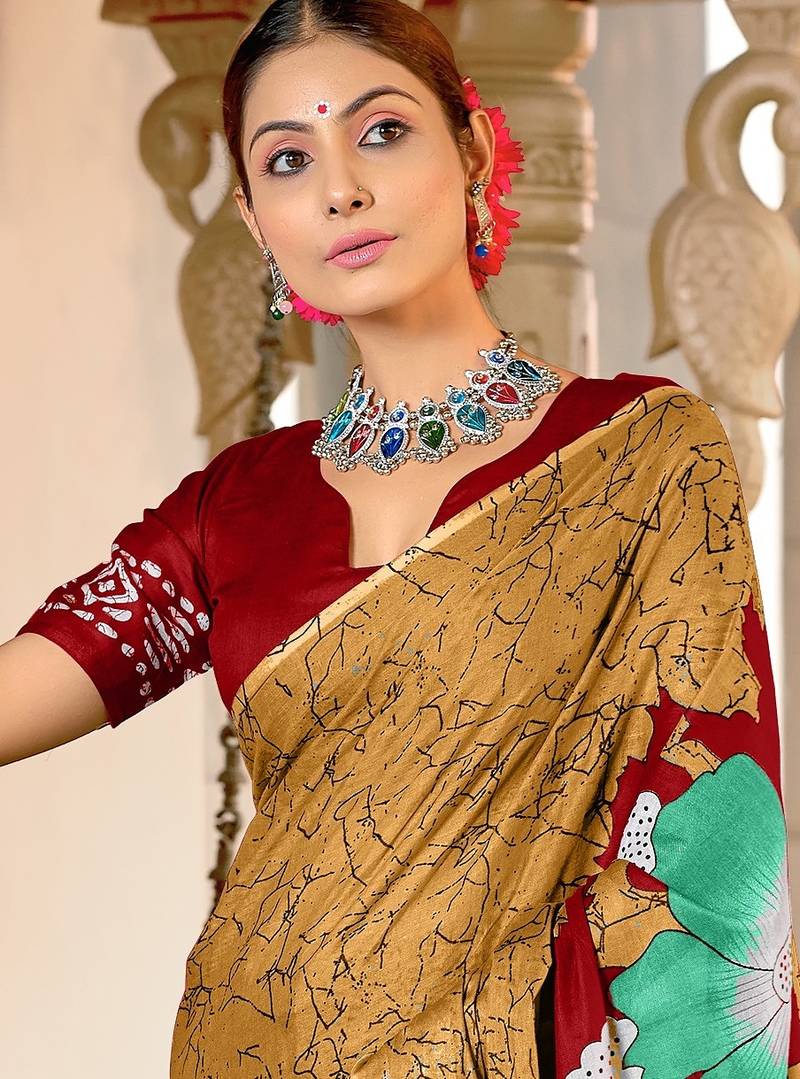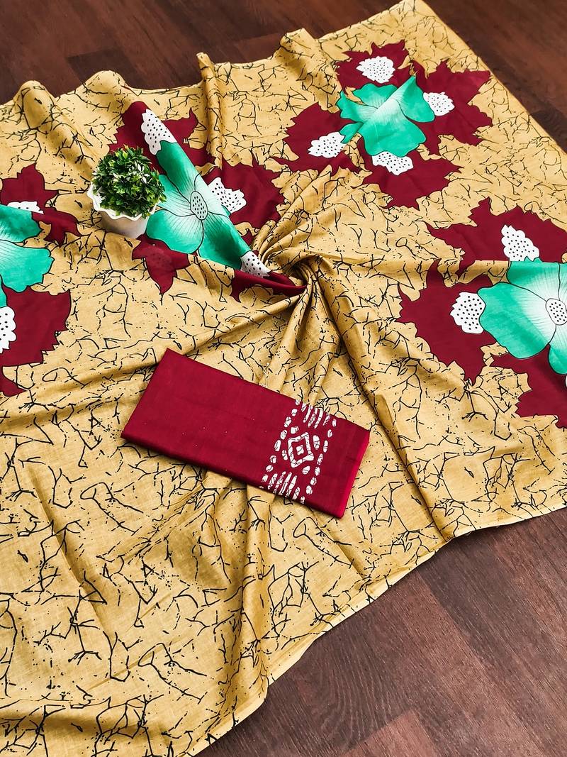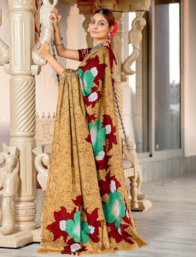 | Product Name | Gold Floral Print Mulmul Cotton Saree With Blouse. | |
