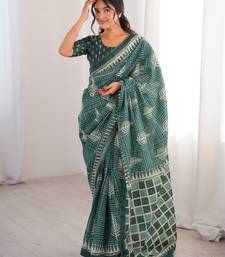 | Product Name | Green Blocked Printed, Floral Print, Geometric Print Soft Pure Cotton Saree With Blouse. | |