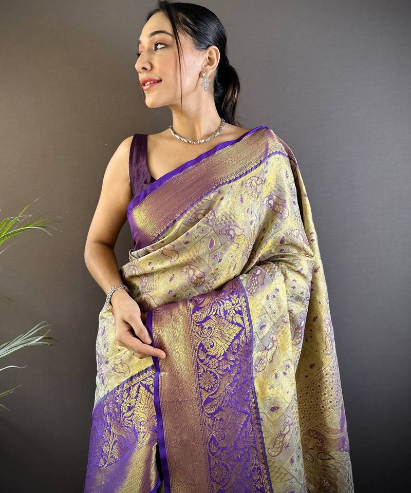 | Product Name | Green Floral, Peacock Zari Woven Tissue Silk Saree With Blouse | |