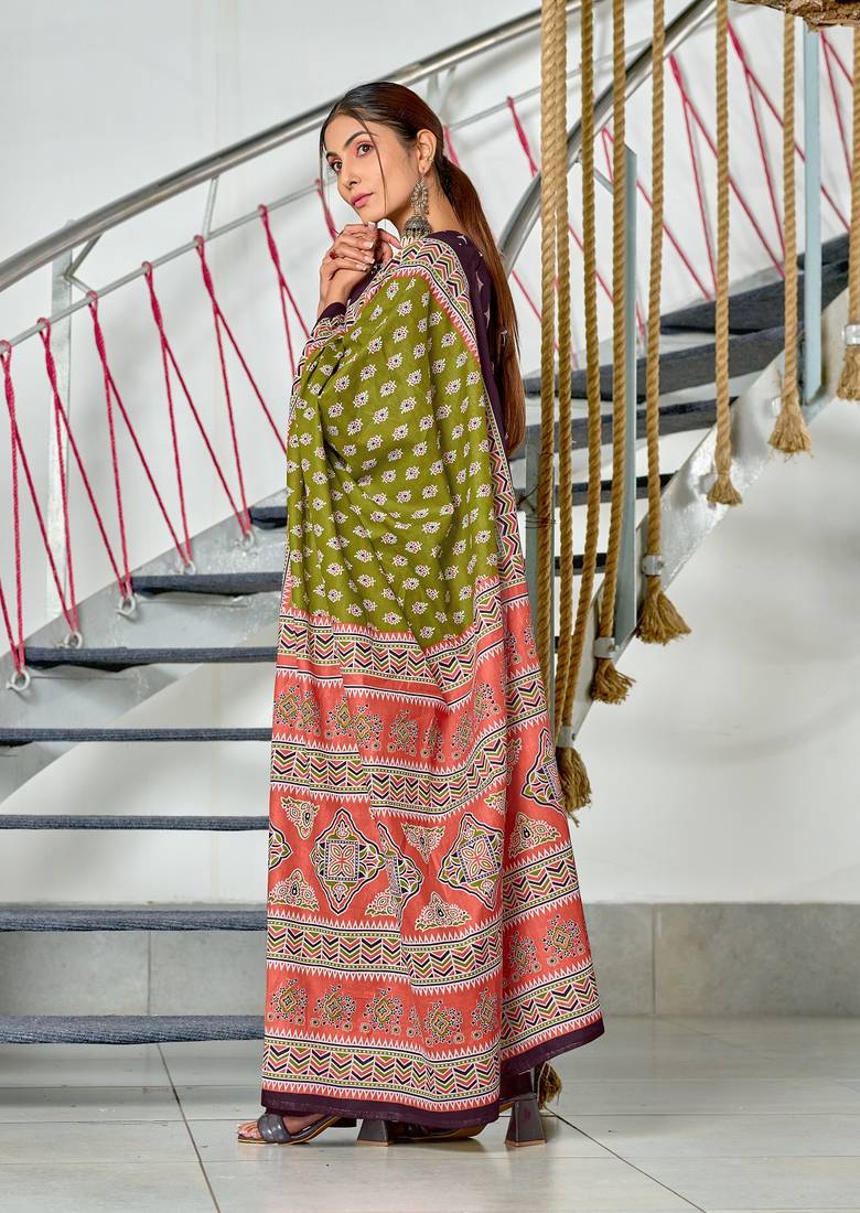 | Product Name | Green Floral Print Mulmul Cotton Saree With Blouse. | |