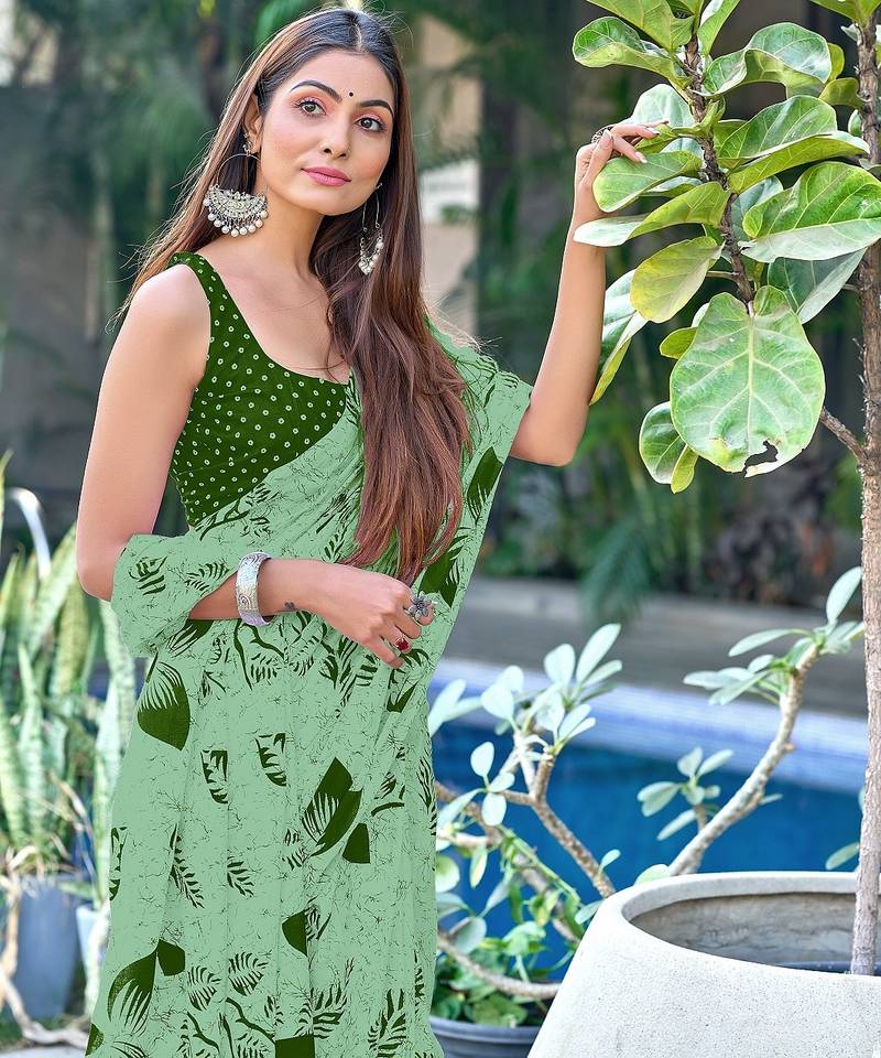 | Product Name | Green Floral Print Mulmul Cotton Saree With Blouse. | |