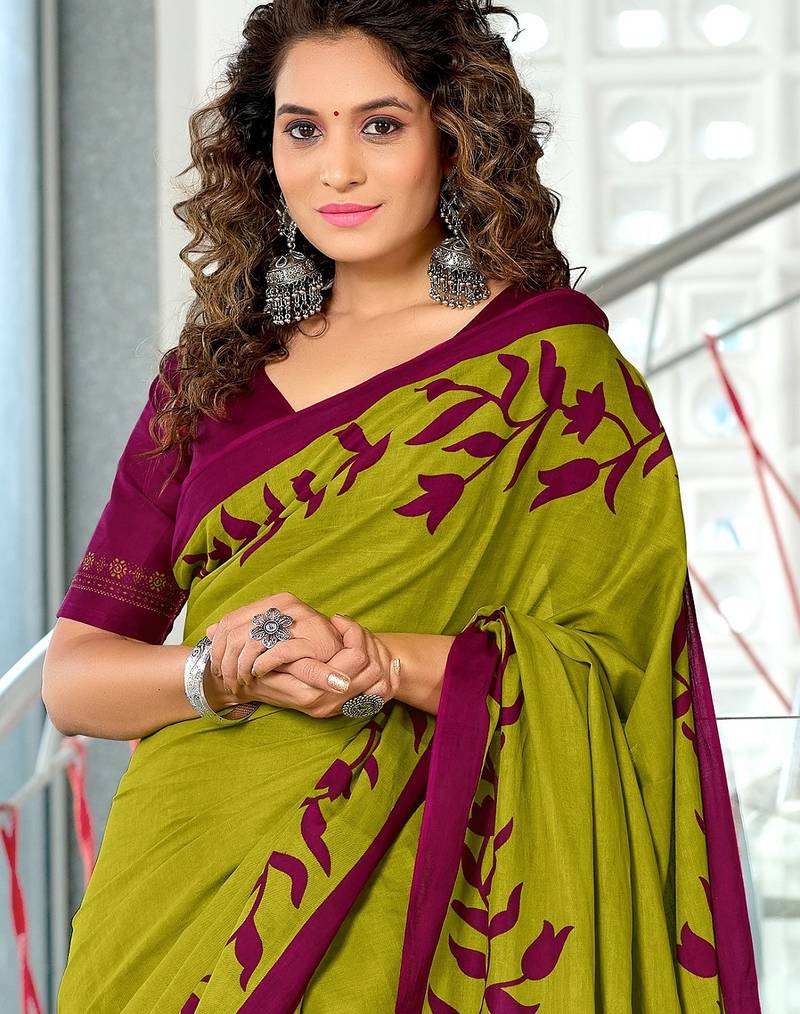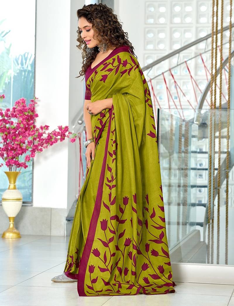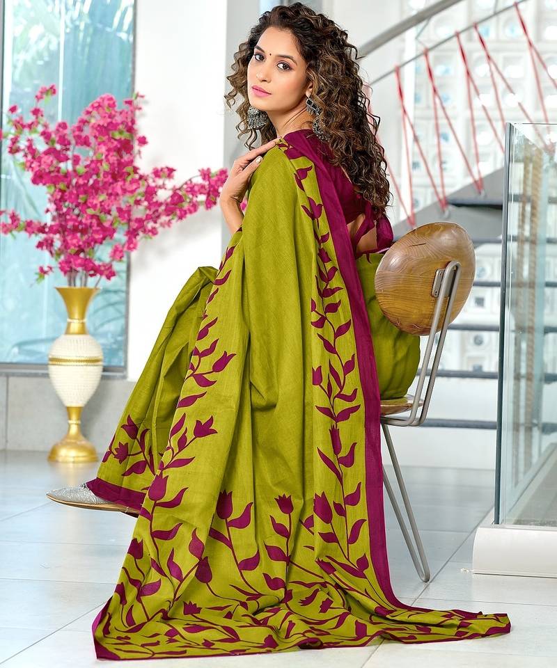 | Product Name | Green Floral Print Mulmul Cotton Saree With Blouse. | |