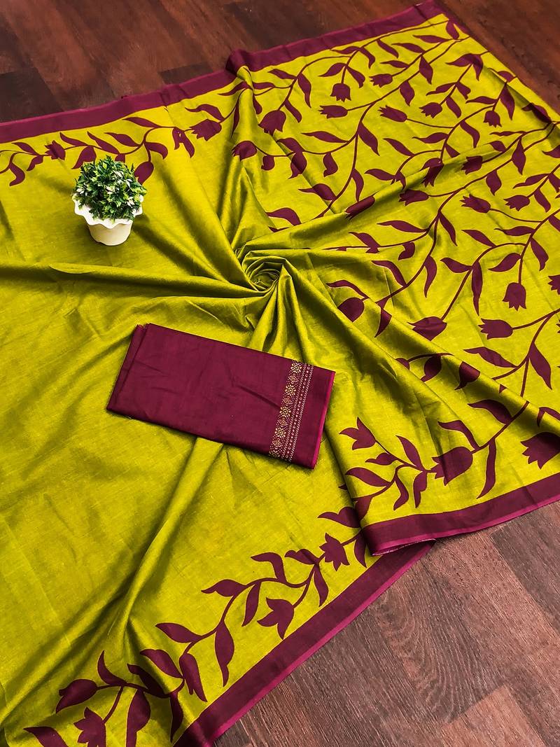 | Product Description | Made From Premium Quality Cotton Fabric, This Saree Is Soft, Breathable, And Ideal For All Day Comfort, Especially In Warm Weather. Its Lightweight Texture Ensures Easy Draping, Making It A Perfect Choice For Daily Wear, Office Attire, Or Casual Gatherings. |
