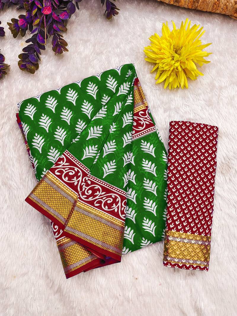| Product Name | Green Floral Print Pure Cotton Mulmul Saree With Blouse. | |