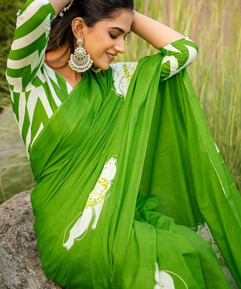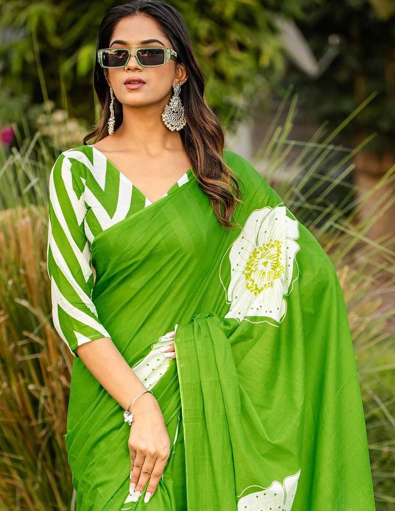 | Product Name | Green Floral Print Soft Pure Cotton Saree With Blouse. | |