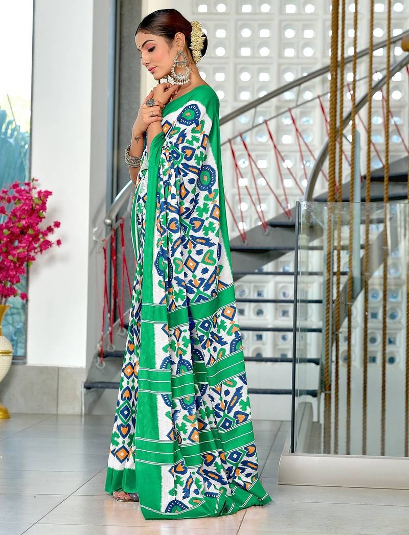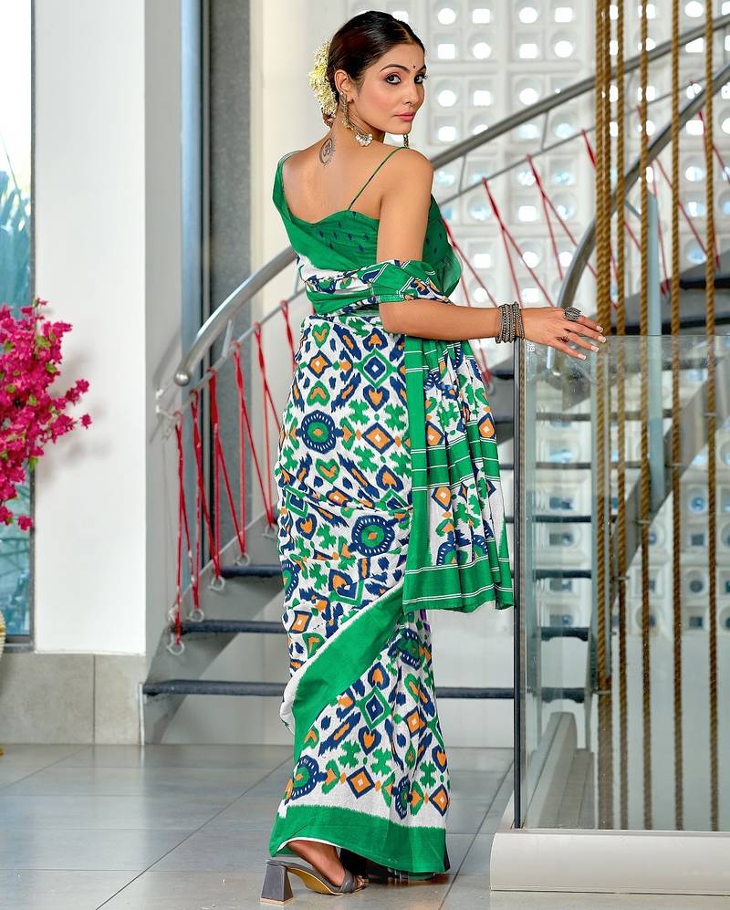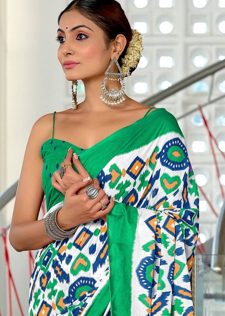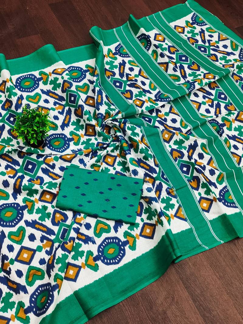 | Product Name | Green Ikkat Print Mulmul Cotton Saree With Blouse. | |